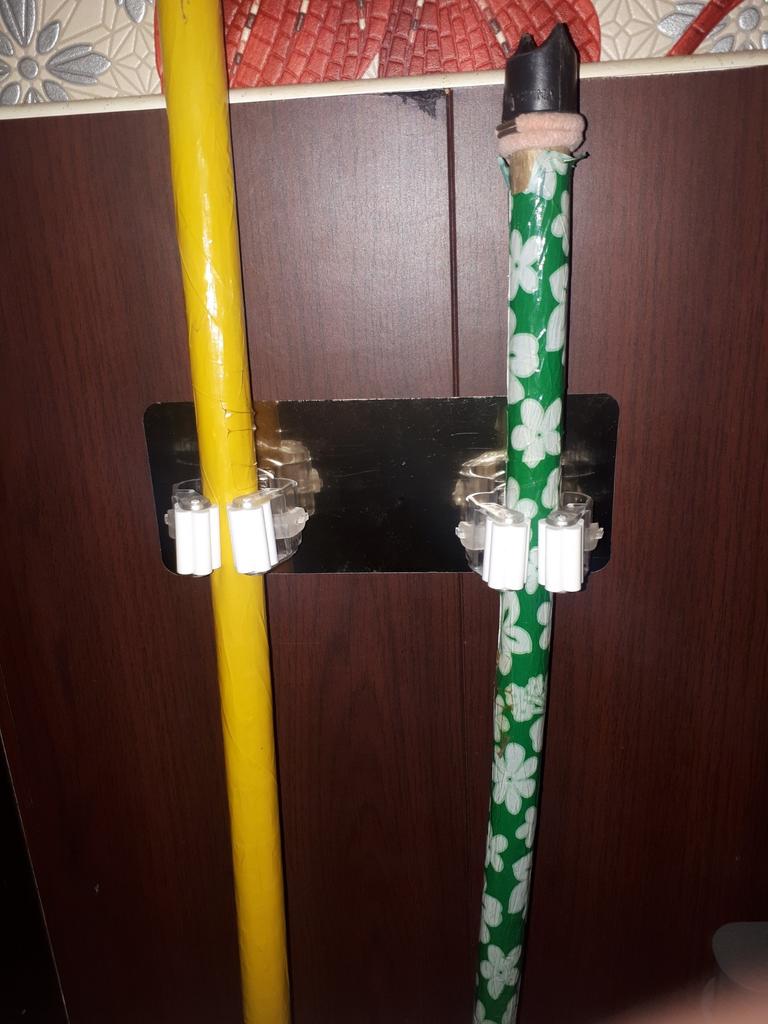 Это уже второй держатель, который я заказываю. Первый я использовала для трости. И скажу что оказалась, что они очень удобны. Трости не падают, стоят ровно и всегда под рукой. Теперь буду использовать для швабр и метелки. Товар больше , чем рекомендую, советую. Один можно использовать для метелки, а другой для совка, которому вечно нет удобного места. При необходимости клеющую основу можно разрезать и держатели разнести подальше или использовать поотдельности