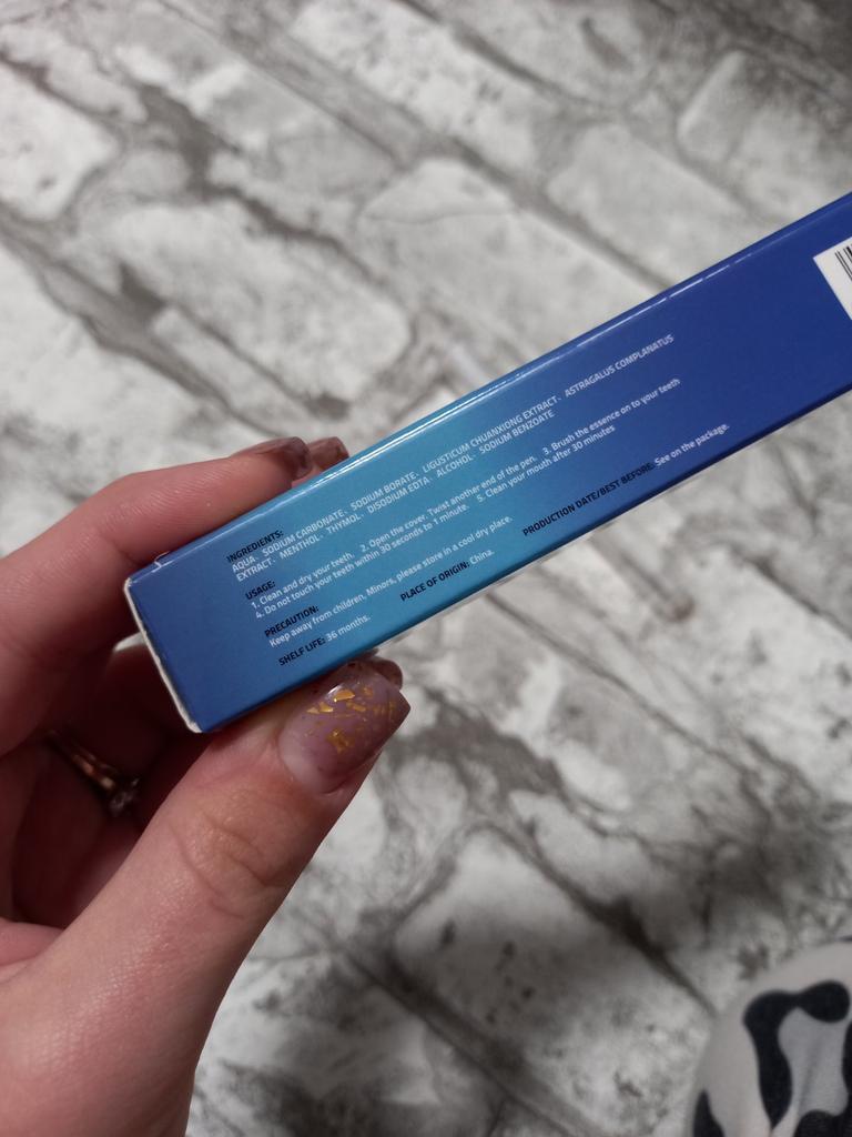 Всем доброго дня!!! И так... Посылка шла 2 месяца до Караганды, считаю что долго. Упаковка была целой. Заказал 2шт так как решил потягаться с улыбкой Бреда Питта. И вот начинаю процедуры, но тут же облом, карандаш оказался бракованным, прокручиваю поршень, а чудотворная жидкость не выдавливается на кисточку, поршень перепускает и жидкость осталась в сосуде. Выбросил, благо урна находилась рядом. Но я не отчаялся, так как у меня есть второй карандаш, хвала Богам он оказался исправным. Процесс пошёл. Раз в день, после чистки зубов наносил содержимое карандаша на зубы, держал всё это дело 10-15 минут и спаласкивал, ( если честно очень муторный процесс), но я человек упертый и не бросил это дело. Карандашика мне хватило ровно на 10 дней и что в итоге?! ВАУ эффекта я не увидел. Да, зубы стали немного светлее, совсем немного, ( возможно сыграл тот фактор, что я любитель попить кофе с сигаретой ), ну и так же предположу, что при регулярном использовании эффект может быть и лучше. Подведём итог: 1 звезда: Посылка отслеживалась до почты 2 звезда: Прикольный карандашик, удобный в использовании 3 звезда: За результат от использования, пусть не большой, но всё таки он есть. P.S: Планировал сфотографировать зубы до и после использования данного продукта, но банально забыл сделать фото ДО))) Так что, строго не судите))) Всем спасибо за внимание!