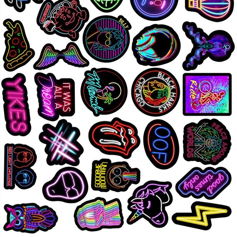 50 шт./лот, новые неоновые светоотражающие наклейки на велосипед, модные забавные аниме, Чемодан, чашка мобильного телефона, декоративные наклейки на раму велосипеда
