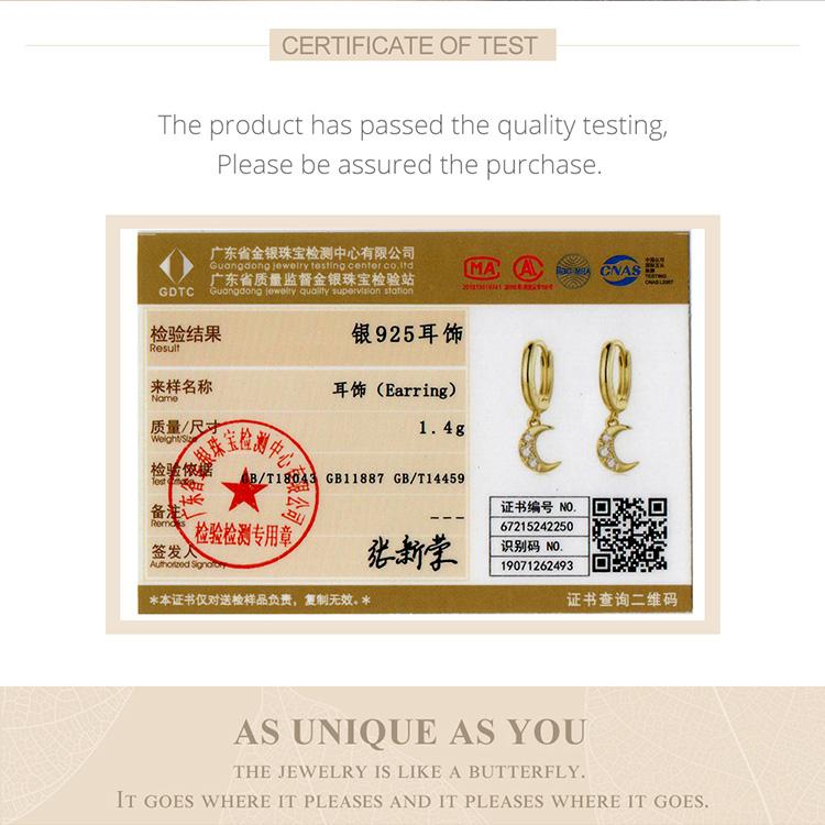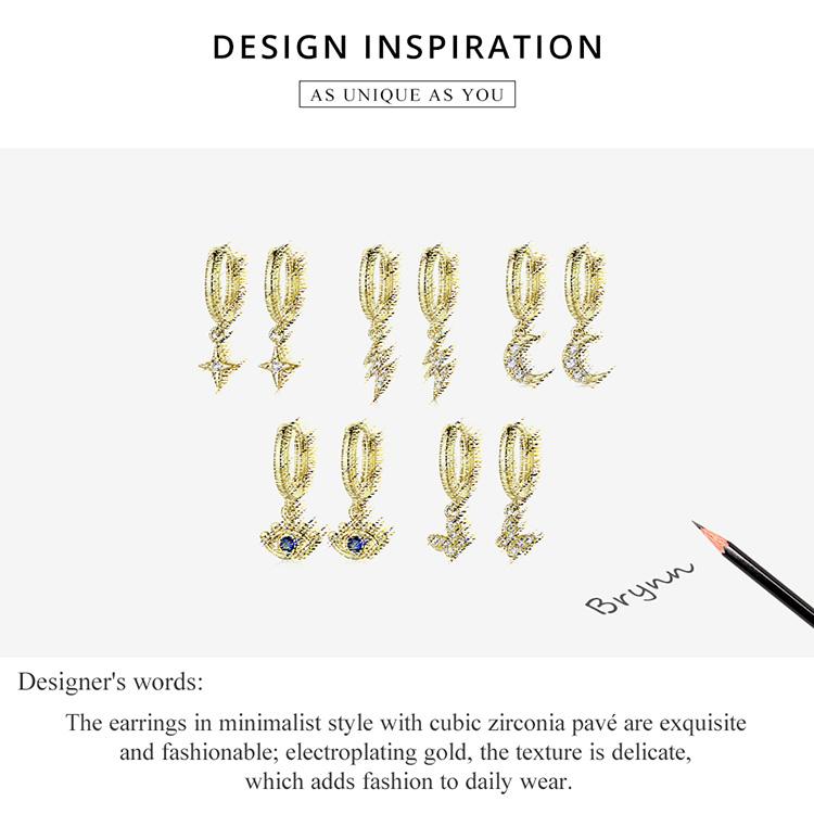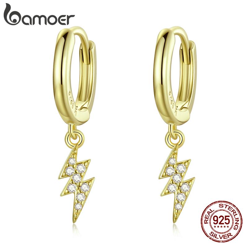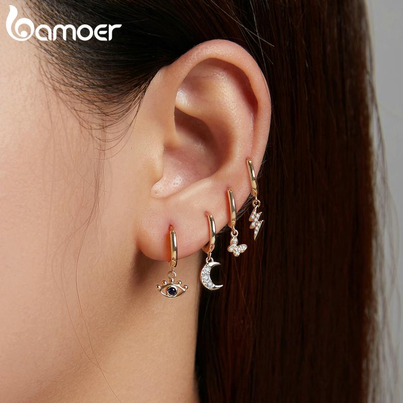 Женские серьги BAMOER из стерлингового серебра 925 пробы с позолотой, 1 пара блестящих циркониевых серег с луной, звездой, глазом демона, бабочкой и молнией, пряжка для женщин, изящные ювелирные изделия