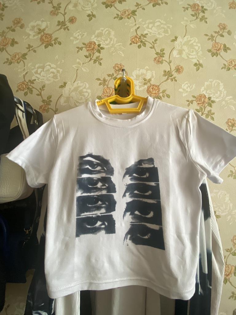 Топ-футболка очень классный рисунок четко видно.можно мне кажется было свой размер взять ну и так тоже очень хорошо.берите не пожалеете
