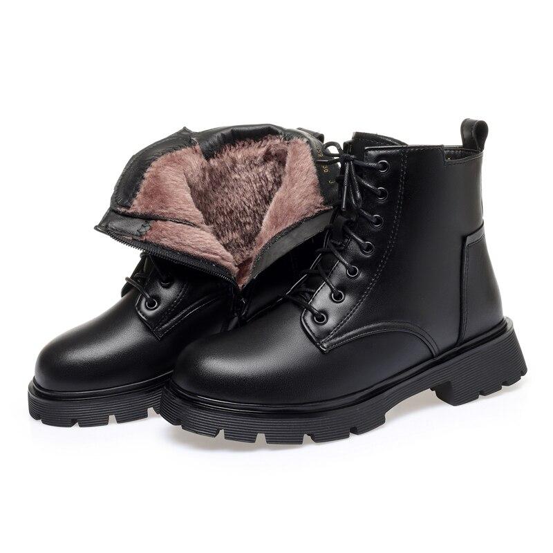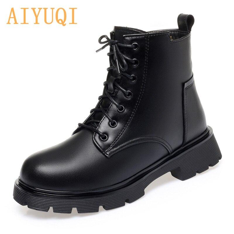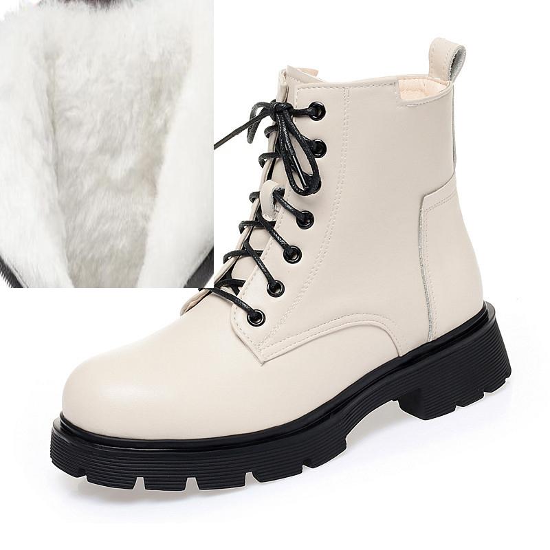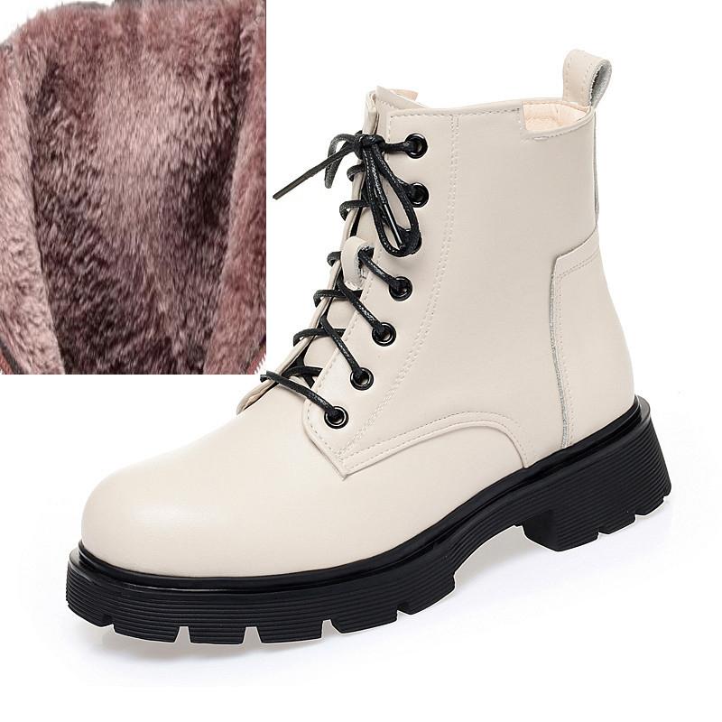 Женские зимние ботинки из натуральной кожи, модные шерстяные теплые женские ботильоны, большие размеры, женские мотоциклетные ботинки в британском стиле