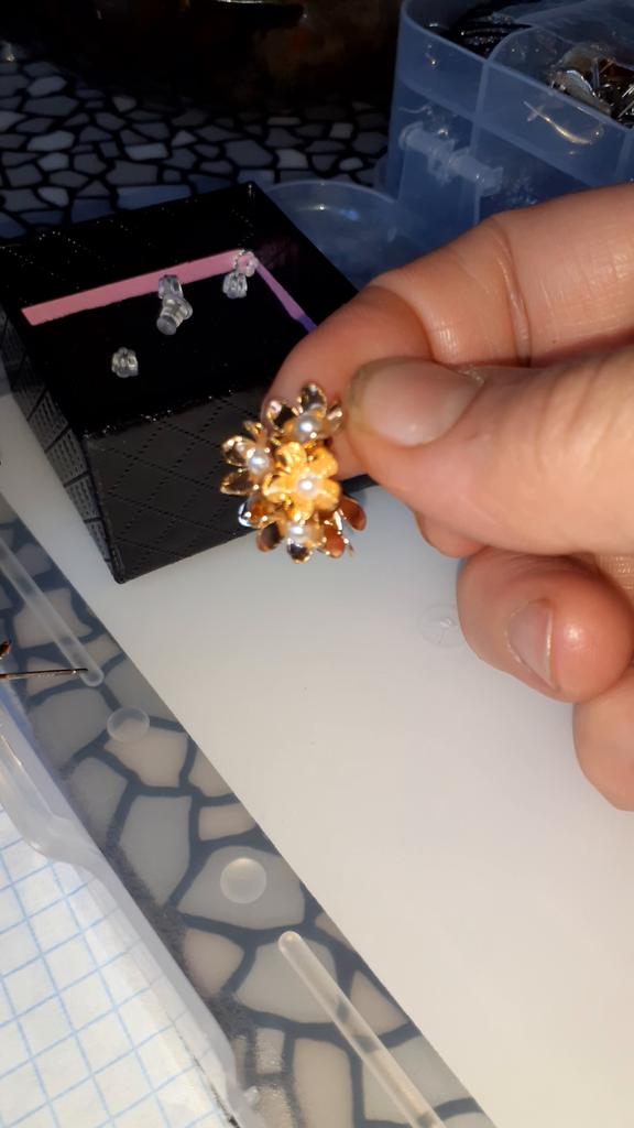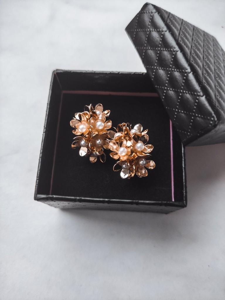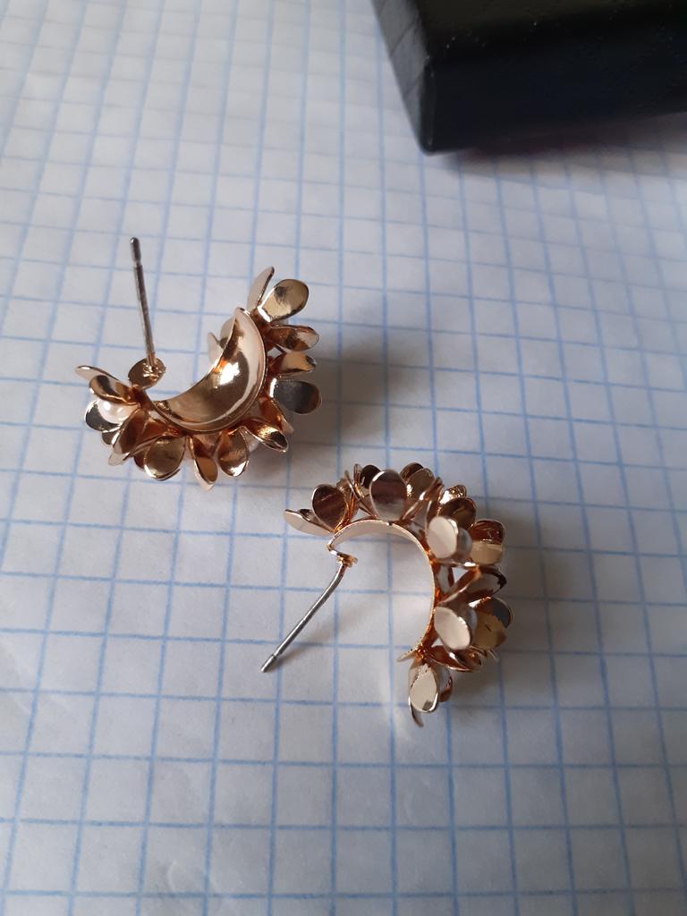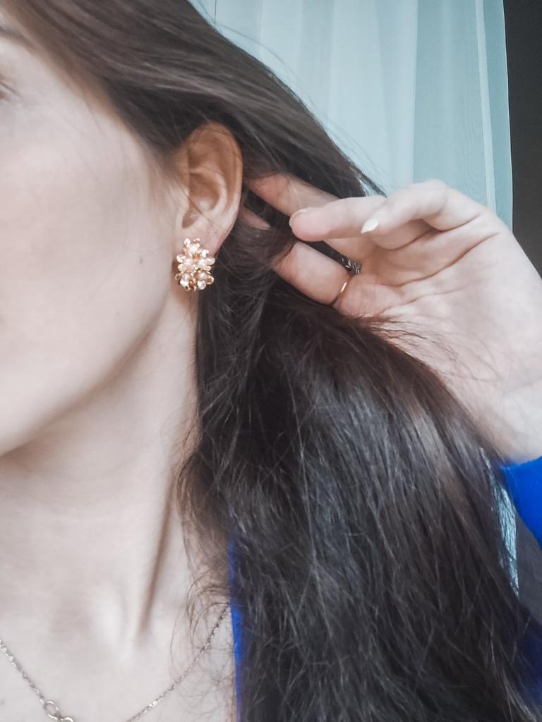 Красивые необычные серьги 🤗🙌 Заказала их, потому что понравился дизайн) По своему строению серьги представляют цветочный букет, в центре с жемчуженками. Материал хороший, достаточно качественный и аллергии не вызывает. Крепеж представляет собой тонкий гвоздик с резинкой на конце. Продавец положил ещё 2 запасные резинки 🤗 Красивую и недорогую бижутерию на joom могу рекомендовать всем, кто спокойно относится не к золотым сережкам)) Подойдет как для подарка, так и для себя, разнообразить образ или на выход 👍