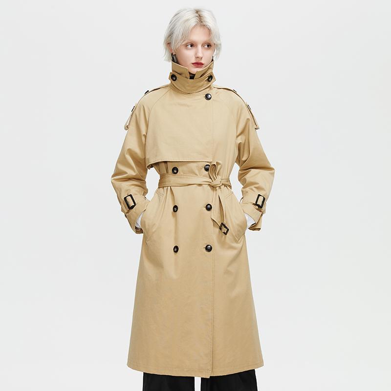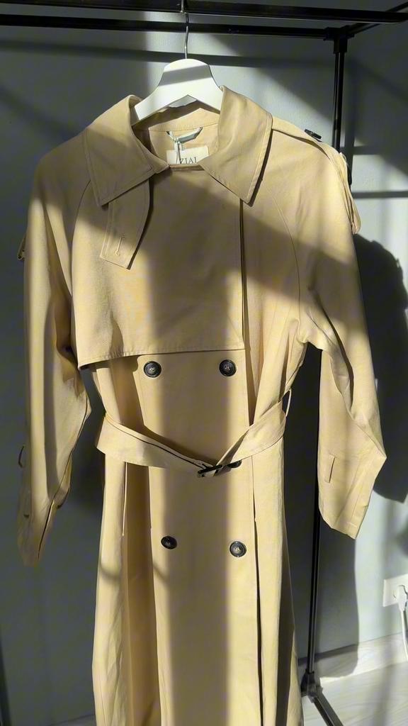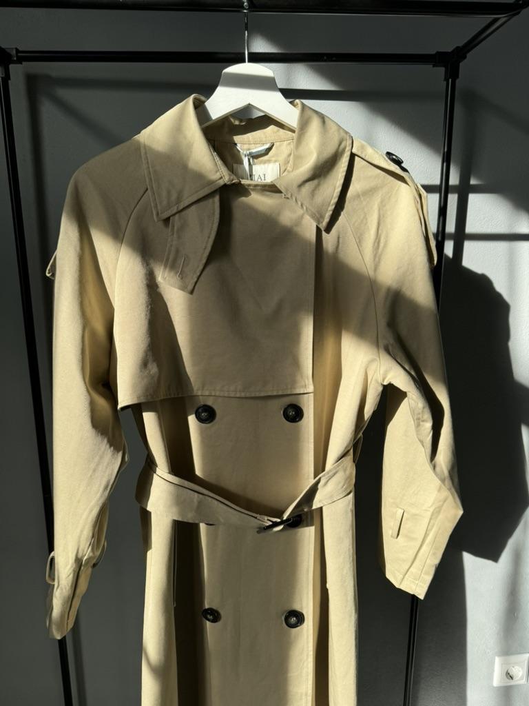 Шикарный двубортный тренч от магазина ziai Приходит в фирменном пакете, есть этикетка, бирка с составом и рекомендациями по стирке. Состав – 100% полиэстер, подкладка 100% –полиэстер Тренч безупречного качества – швы, ткань, фурнитура, нет ни одной торчащей ниточки. Ткань приятная, немного мнётся. На свои параметры рост 159, 90-78-99 размер S подошел отлично. Для расслабленной посадки, или чтобы надеть свитер, подошел бы и M. Замеры в размере S: длина от плеча до низа – 108 см, длина рукава от воротника – 66 см, длина от подмышки до подмышки в застегнутом виде спереди – 54 см. Очень удобно, что ворот можно поднять, если не любишь шарф. Тренч пришел за 3 недели.