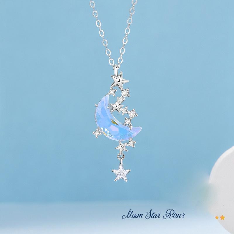 Новое ожерелье с подвеской в виде звезды и луны, ожерелье с лунным камнем, женская мода, подарок на день Святого Валентина, годовщину