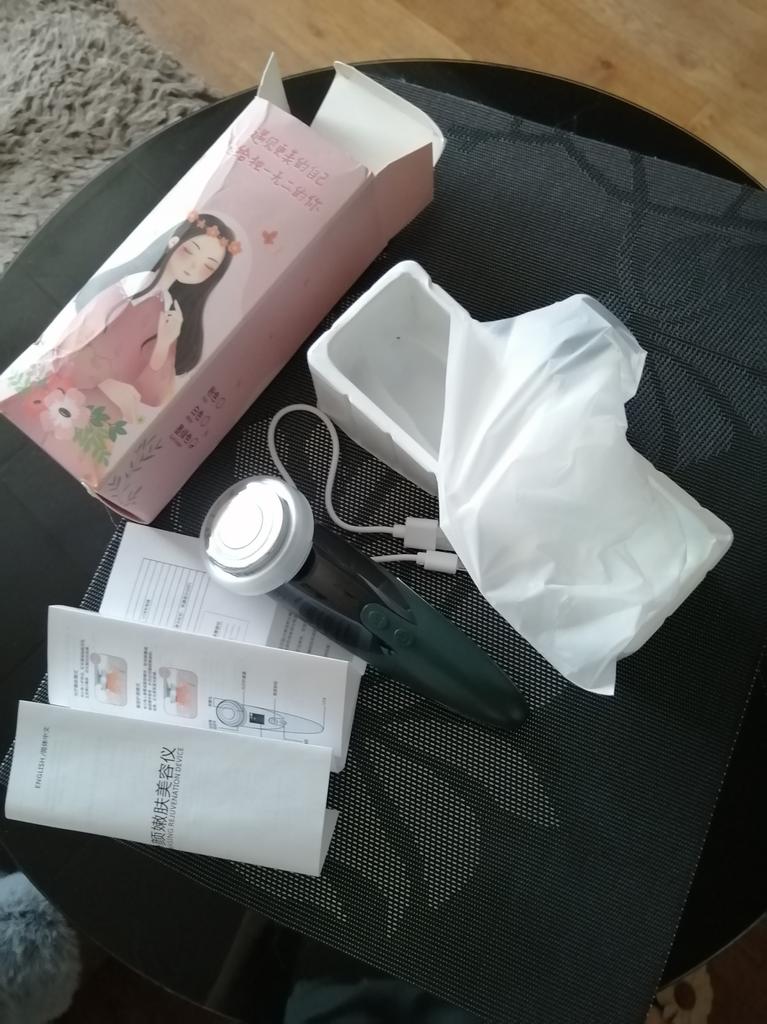 Массажёр для лица. Пришёл достаточно быстро. Посылка не повреждена. Коробка немного помята. Все работает. Разобралась быстро, конечно благодаря отзывам😊. Инструкция на китайском. 4 режима, работает нежно, почти без шума, вибрирует при прикосновении с кожей. О результатах дополню позже. Продавца рекомендую. Спасибо продавцу и Джум!!! 🌼🌼🌼Дополняю, пользуюсь с удовольствием, но без фанатизма 🤭. Кожа хорошо принимает эти процедуры, освежается, но нужно хотя бы раз в неделю это делать, иначе результ будет разовый 😉
