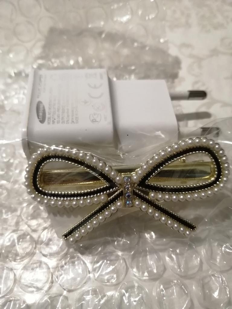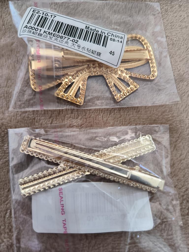 09.11. Посылка покинула склад продавца. А 17.12., забрала на отделение Новой почты, в г. Днепр. Шёл товар больше месяца. Пришли несколько заказов в 1 посылке. В том числе и эта. Замотана была в пупырчатую ленту. Маленькая, но удаленькая. Могу сказать про эту заколку. Красивая. Миниатюрная. Праздничная. Спасибо Джум.