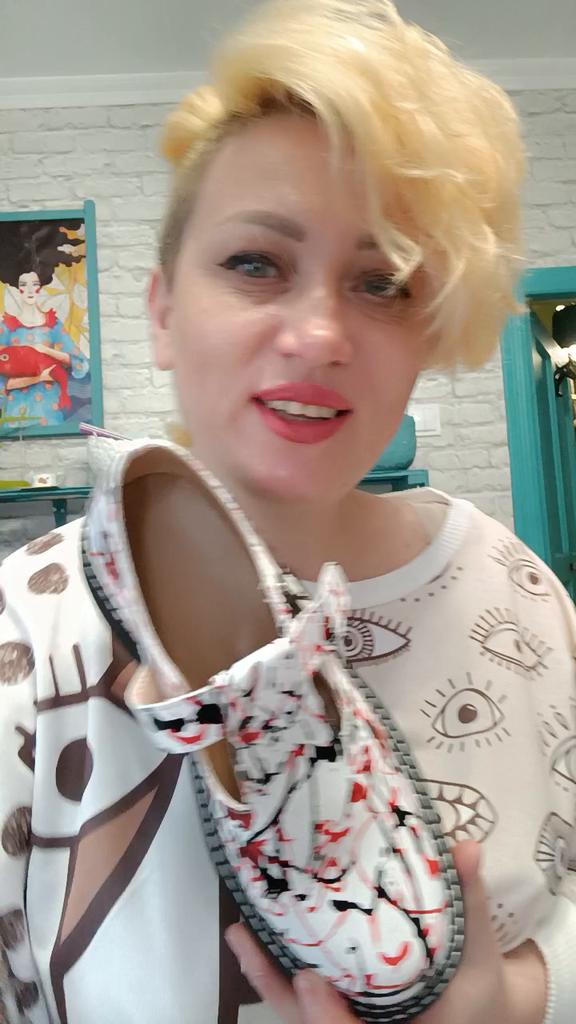 Заказала туфли даже не знаю зачем. Ещё надо подумать с чем их носить. Необычная расцветка, смотрятся красиво. Теперь конкретно о самих туфлях. Туфли упакованы очень хорошо, ( см фото). Не помялись. Большой респект поставщику. Приобретала по скидке. 32 евро. Из минусов: -Очень сильный запах именно от подошвы, она резиновая. Неделю проветриаались на веранде, упаковала их, но спустя несколько дней достала из упаковки- запах остался такой же сильный. - Довольно тяжёлые, специально взвесила ( см , фото) 945 гр. Думаю, что при длительной хотьбе, будут уставать ноги. Плюсы: - Неординарная расцветка - Прошиты двойной строчкой ( но не знаю, может просто обманка, дизайнерский ход) , покажет время. - Очень мягкие, по поводу кожа или нет не могу сказать, - Мягкая стелечка - Задники мягкие Туфли на широкую, подьемистую ногу. Я это знала из обзоров других покупателей. У меня нога узкая, но с " косточкой"., решила рискнуть. Ориентировалась как всегда на размер своей ступни. По стельке хорошо, но в объеме большие. Если положить дополнительно стельку, то нормально. Но тогда будет очень жарко ногам. Вообщем подумаю, что с ними делать. Ещё не обувала, т.к. у нас ещё + 27-28.