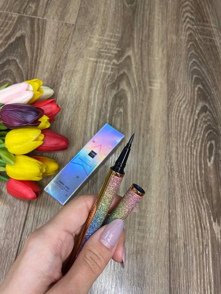 Всем привет, заказав себе тушь, следом я заказала себе и подводку для глаз.Пришли они с разницей в 2 недели.Бросили в почтовый ящик, упакована была достаточно хорошо ,коробка была не повреждена.От туши я осталась в полном восторге, поэтому подводкой пользоваться начала тоже с большим удовольствием.Подводка представляет собой фломастер.Ложиться легко ,без разводов, цвет достаточно насыщенный.Никакого неприятного запаха не присутствует.Липкого эффекта за собой не оставляет, высыхает достаточно быстро.Отходив целый день я заметила, что никаких чёрных следов под глазами не остаётся ни от туши, не от подводки.Носится достаточно хорошо, никакого усталости после косметики я не заметила, хотя у меня очень капризные глаза, если косметика мне не идёт, у меня начинается сразу слезоточивость. В этом случае этого не произошло !Не подводка ни тушь не являются водостойкими.За такую цену я однозначно закажу себе ещё по их окончанию!