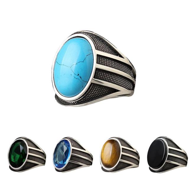 Серебряное кольцо с овальным камнем для мужчин, серебро 925 пробы, тигровый глаз, бирюза, топаз, зеленый циркон, черный оникс, ювелирные украшения, кольца для мужчин, модный подарок для него — купить товар онлайн с бесплатной доставкой до всему миру!