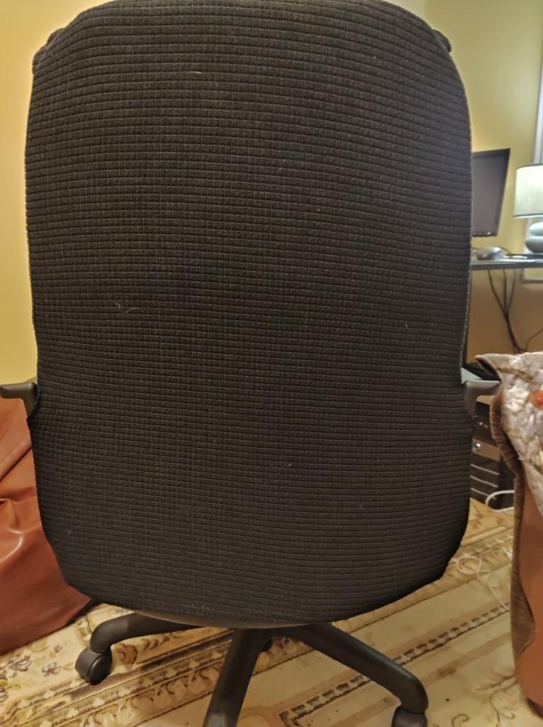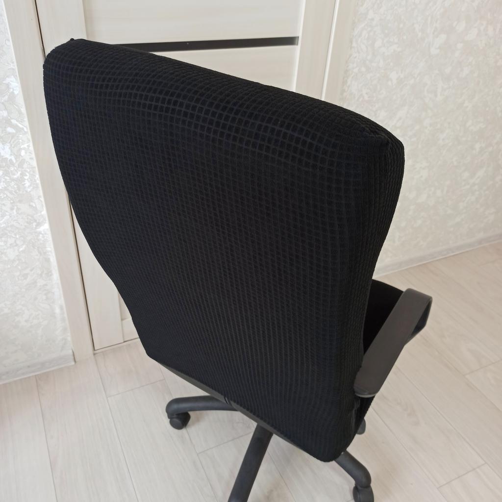 Чехол на офисное кресло водоотталкивающий. И промокод на скидку -5%: 41Z22J80PZ Доставка заняла ровно месяц до почтового отделения Укрпочты. В магазине на выбор огромное количество расцветок, я выбрала черный. Я заказала размер L: 55х70 см. Мое кресло большое, с высокой и широкой спинкой, чехол подошёл впритык, натягивала с трудом, но в целом, сидит хорошо. Состав: трикотаж-жатка (90% полиэстер 10% спандекс) Чехол предназначен для защиты от загрязнений, потертостей, изнашивания и домашних животных. Изготовлен из эластичной жаккардовой спандексной ткани - эластичной, прочной, водоотталкивающей и с длительным сроком эксплуатации. Эластичная и универсальная модель подходит на большие различные типы и формы. Чехол цельный с боку на молнии для легкости одеваия его на кресло с подлокотниками. За ним легко ухаживать, можно стирать в стиральной машине при температуре до 40 градусов, сохнет быстро, не нуждается в глажке после стирки. Отличное соотношение цены и качества, у нас такие чехлы стоят в разы дороже, я довольна покупкой и преображением моего кресла. Однозначно рекомендую к покупке 👍