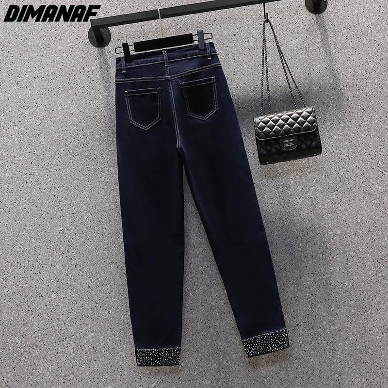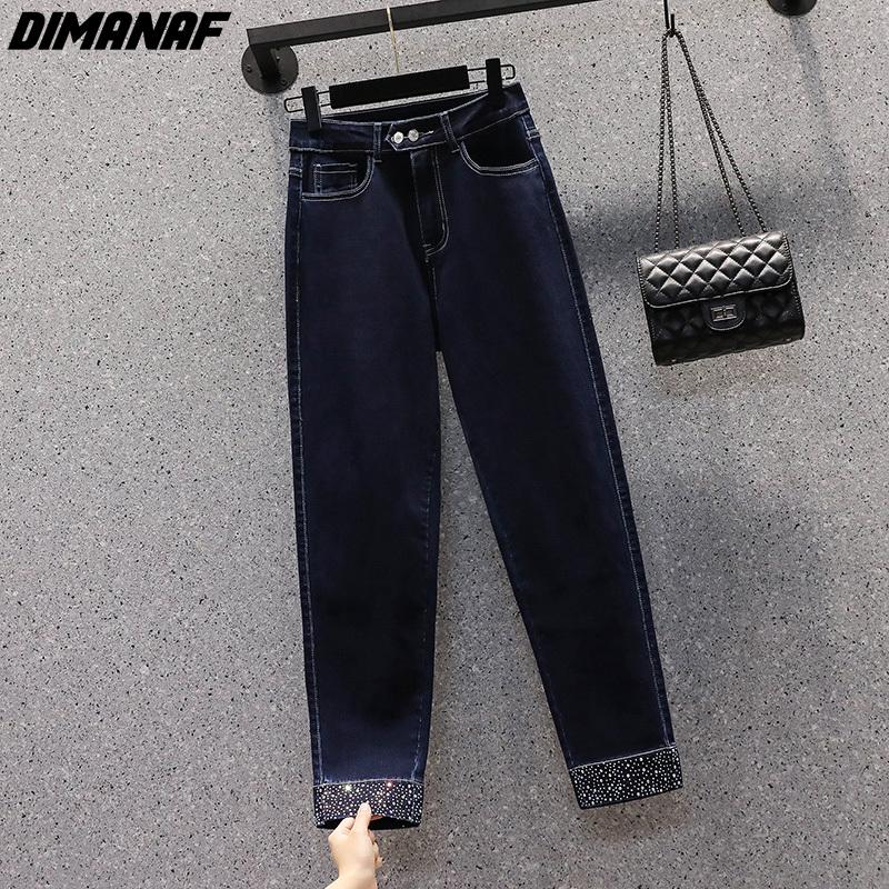 DIMANAF Большие размеры женские осенние джинсы однотонные брюки шаровары женские эластичные базовые синие брюки с высокой талией оверсайз модные новые брюки 4XL 5XL