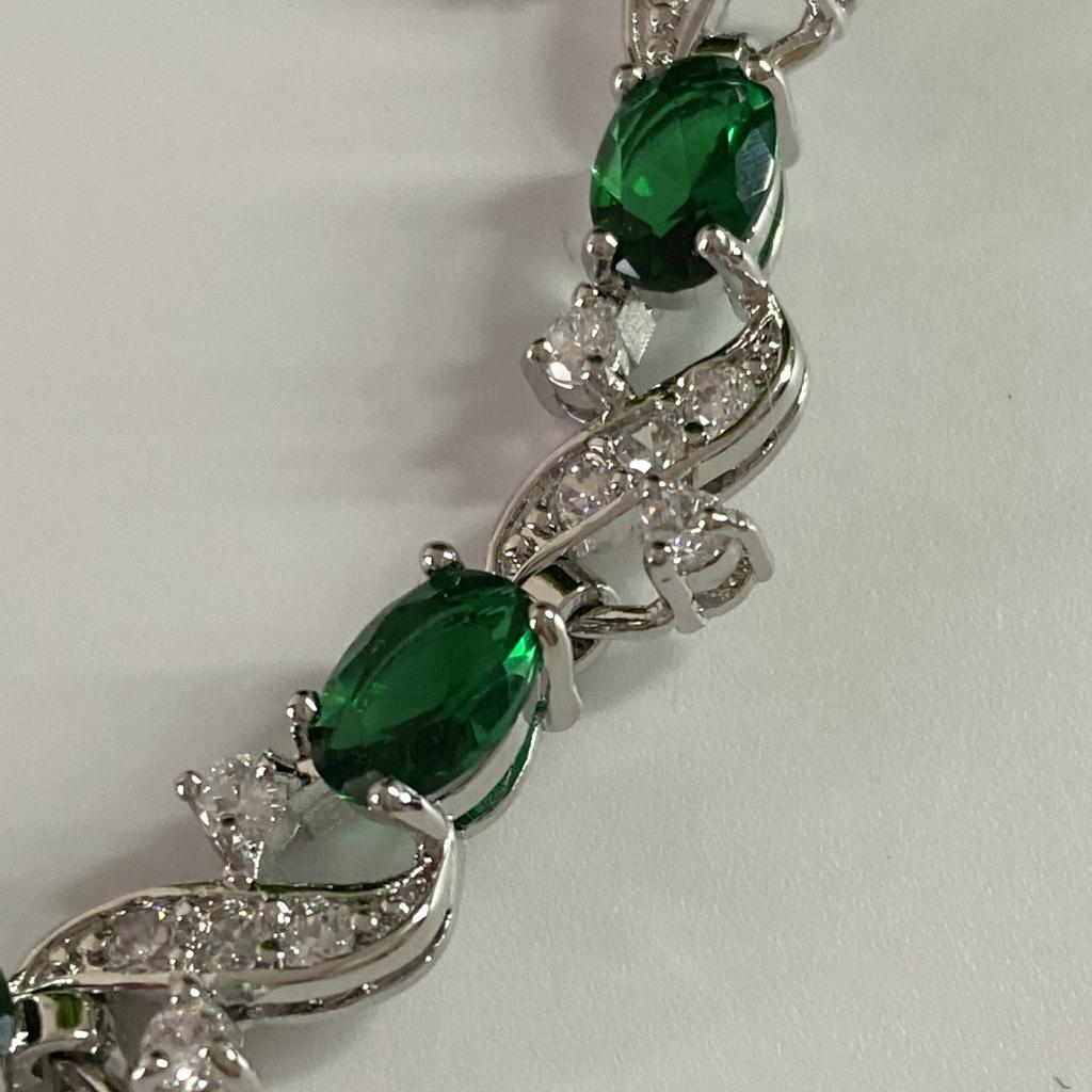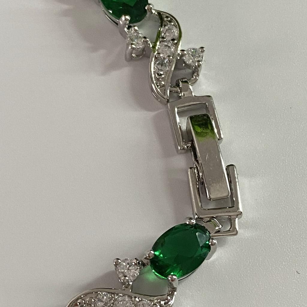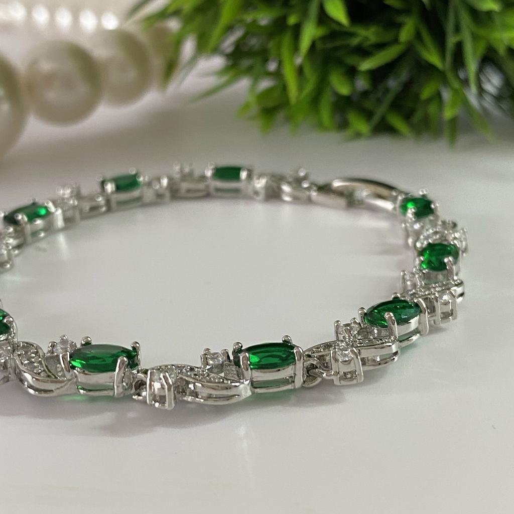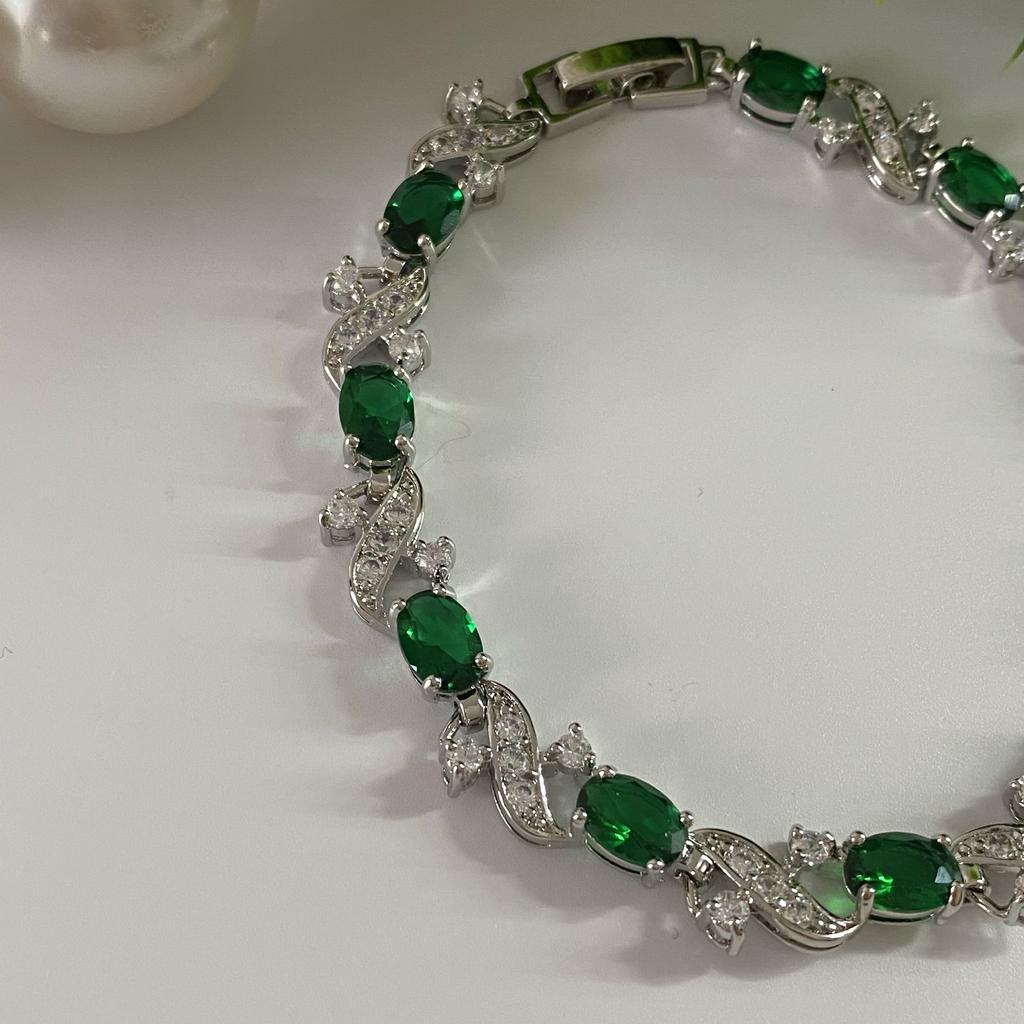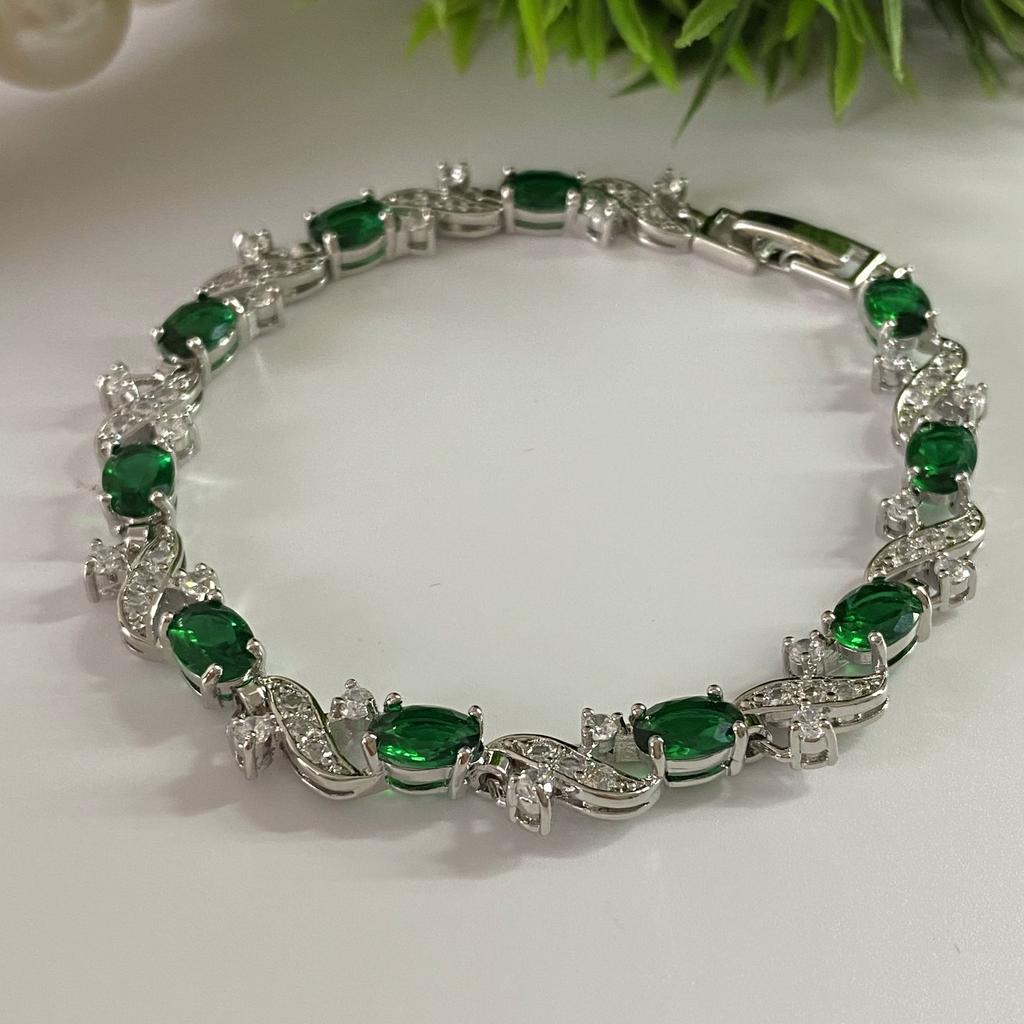 Шикарный браслет с кубическим цирконием. Мне не важно какой там ка егь но как он смотрится можно с ума сойти, и можно смело сказать что это белое золото изумруды и бриллианты. Написано что сплав медь но на застежки стоит проба серебра 925. Кстати застежка как у дорогих браслетов, надёжная и удобная. Сделан браслет отлично, это поистине ювелирная работа, все аккуратно. А как он переливается словами не передать и камера не может уловить блеск камней, накладывать фильтры я не стала. У продавца есть и другого цвета камни , но я обожаю изумруды, поэтому выбор был очевиден. Однозначно рекомендую к покупке. А в подарок продавец положил бирюзовые пуссеты, мелочь но приятно.