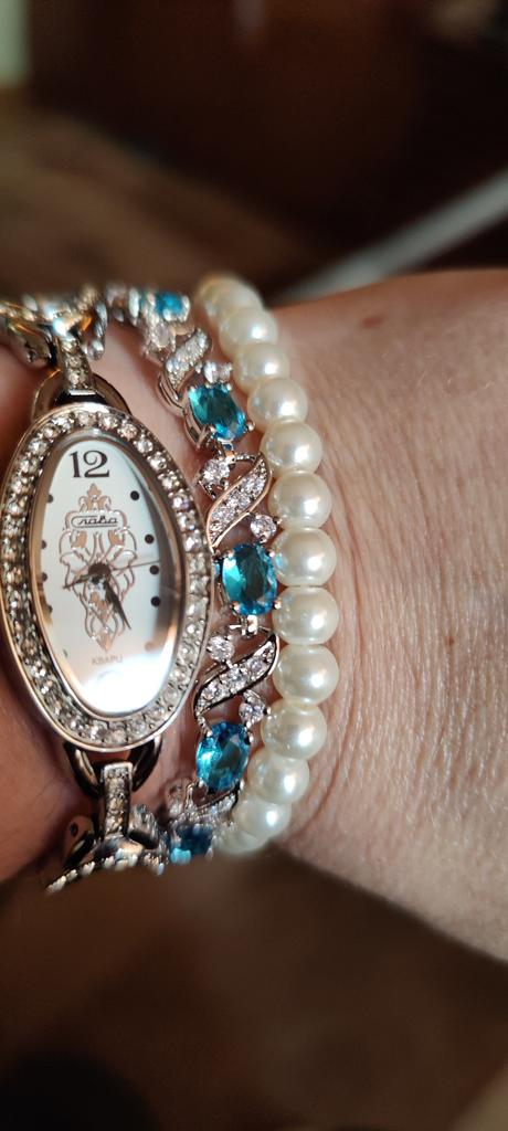Очень симпатичный браслет, нежный...но на широкое запястье не пойдет. Отдельное спасибо продавцу за письмо и жемчужный браслетик в подарок!