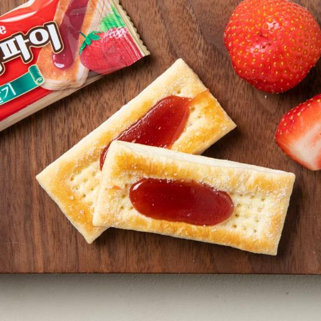 Мука 1 {пшеница (США)}, маргарин 1 [переработанный жир {пальмовое масло (Малайзия), гидрогенизированное пальмовое масло (Индонезия)}, пальмовое масло (Малайзия), соевое масло, жир, топленое масло], сахар, мука 2 { Пшеница (США, Канада)}, крахмальный сироп, глюкоза, подслащенная клубника {клубника (Корея), сахар, витамин C}, подслащенное яблоко [яблоко (Корея), сахар, пектин, витамин C}, маргарин 2 (гидрогенизированное масло), Смешанное кулинарное масло, рафинированная соль, шортенинг, пектин, амидный пектин, камедь рожкового дерева, эмульгатор, синтетический ароматизатор (клубничный вкус), регулятор кислотности, смешанные препараты (ягодный пигмент, краснокочанный пигмент, желтый сафлоровый пигмент, красный пигмент гардении, очищенная вода ), Ксантановая камедь, краснокочанный пигмент