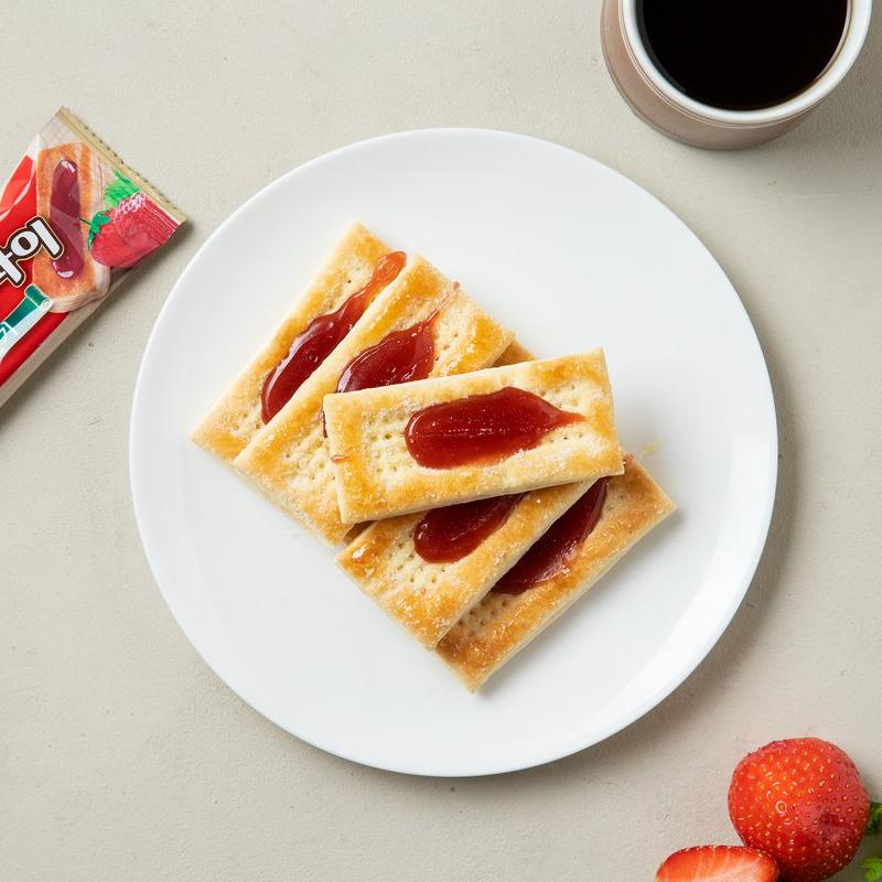 Целую корейскую клубнику кладут на размягченный путем низкотемпературной выдержки пирог, чтобы вы могли наслаждаться хрустящей и сладкой одновременно. Идеально подходит для перекуса, особенно в дороге..