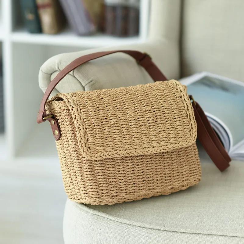 Yogodlns Повседневные сумки на плечо с клапаном для женщин, маленькая сумка через плечо, кошелек, соломенная дорожная пляжная сумка ручной работы