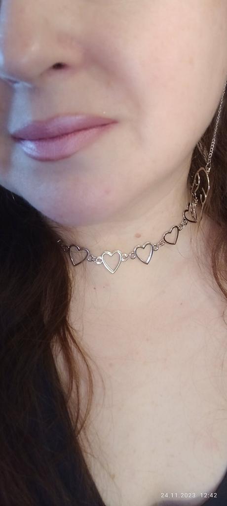 Колье/чокер/ожерелье с сердечками!🤍Брала себе в комплект со своим кольцом-сердечком!Мне очень понравилось, минусов не нашла🧸Заказала 17 января, пришли 24 февраля в Одессу🥰(на фотке я одела на самый последний кружок, поэтому странно выглядит)