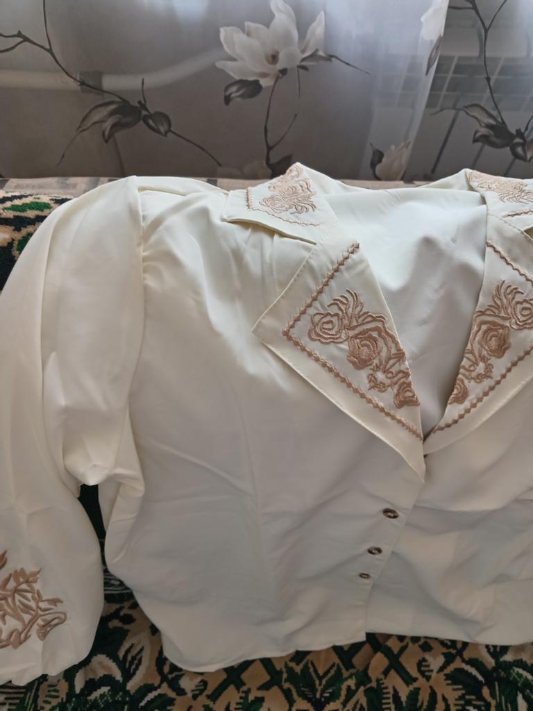 Отличная нарядная, вышитая блузка. Размер XXL подошёл на 48 размер.. Качественно сшита, материал мягкий, красивая отделка вышивкой в тон. Рекомендую.