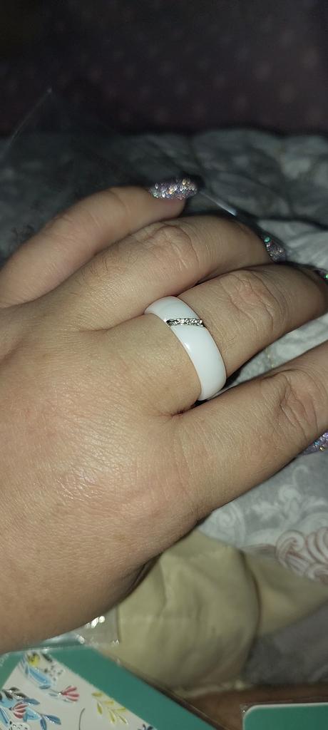 Заказала уже второе колечко из керамики с двумя. До этого заказала 9 (на безымянный палец, ношу 18.5) В этоо раз решила заказать 10 что бы носить на среднем, село комфортно Правда камушки прям маленьки