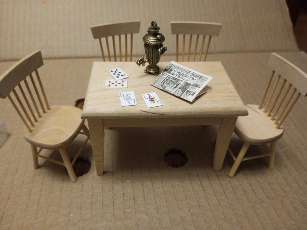 5 шт. Миниатюрный обеденный стол, стул, набор деревянной мебели для кукольного домика 1:12 --- Цвет дерева — купить товар онлайн с бесплатной доставкой по всему миру!