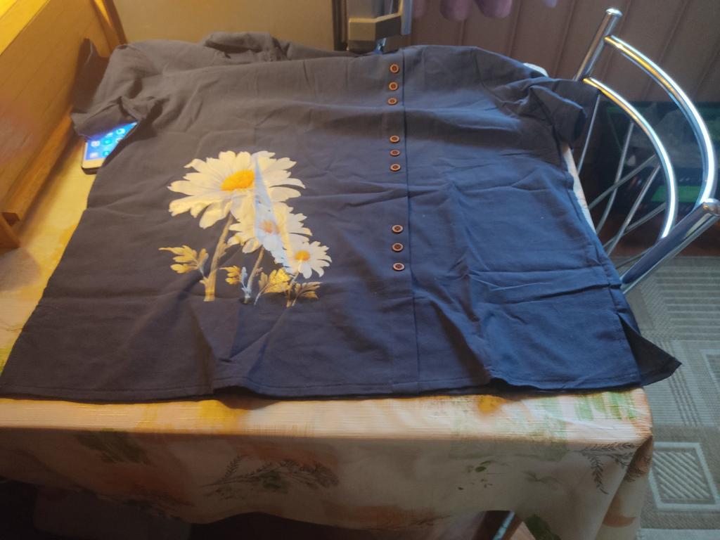 Получила блузу--размер вроде един у всех трёх блуз, а когда померяла так именно вот эта чуть меньше остальных! Не критично конечно--но не знаю как будет после стирки?А ещё именно эта блуза на фото сайта смотрится гораздо ярче цвет!!!а в наличии же пришла очень бледного цвета скорее белая с маахоньким отсветом зелени!А так да!НАТУРАЛЬНЫЙ Хлопок и в жару будет не жарко! Я ну ОЧЕНЬ!! люблю ромашки поэтому и выписала сразу три блузы только разных цветов! Размер --мне так показалось!-- чуть меньше заявленного--так размер L-на наш 46 русский почти в притык-(не в обтяг!!--но и не широкий!)--кто любит свободнее лучше взять больший размер! А так блузы отличные--натуральный хлопок.БОЛЬШОЕ СПАСИБО Продавцу и JOOM!