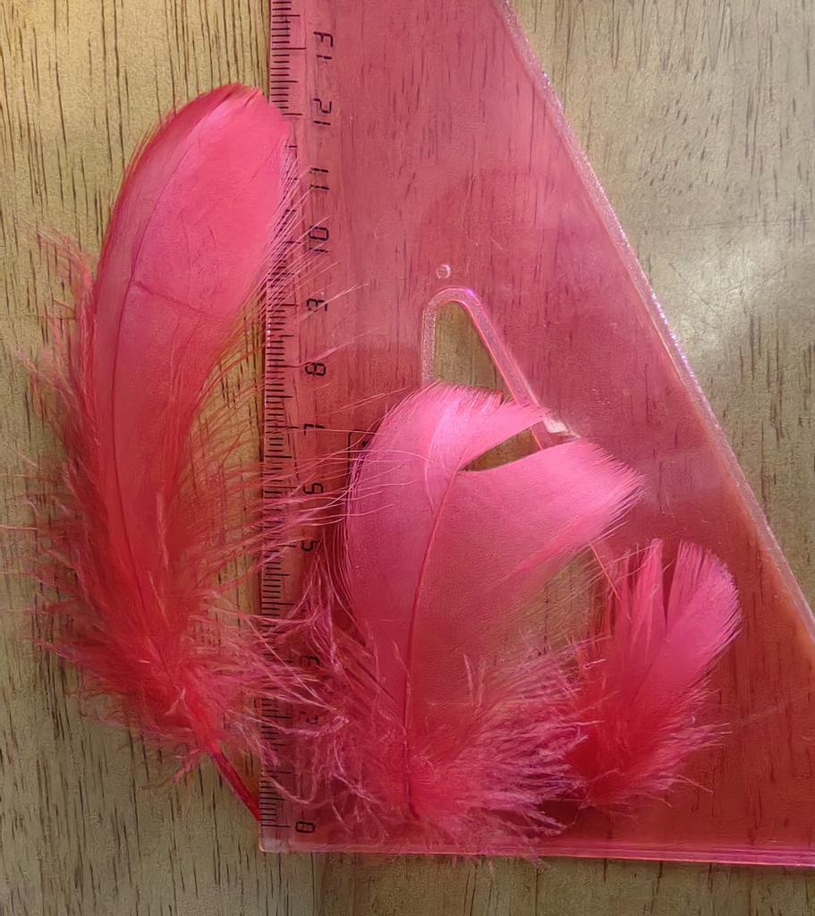 На рекламных фото пёрышки примерно одинаковой формы, и довольно нежной окраски, но это, конечно, не так. Разной формы и разного размера, в том числе менее указанного в описании. И слишком яркие.