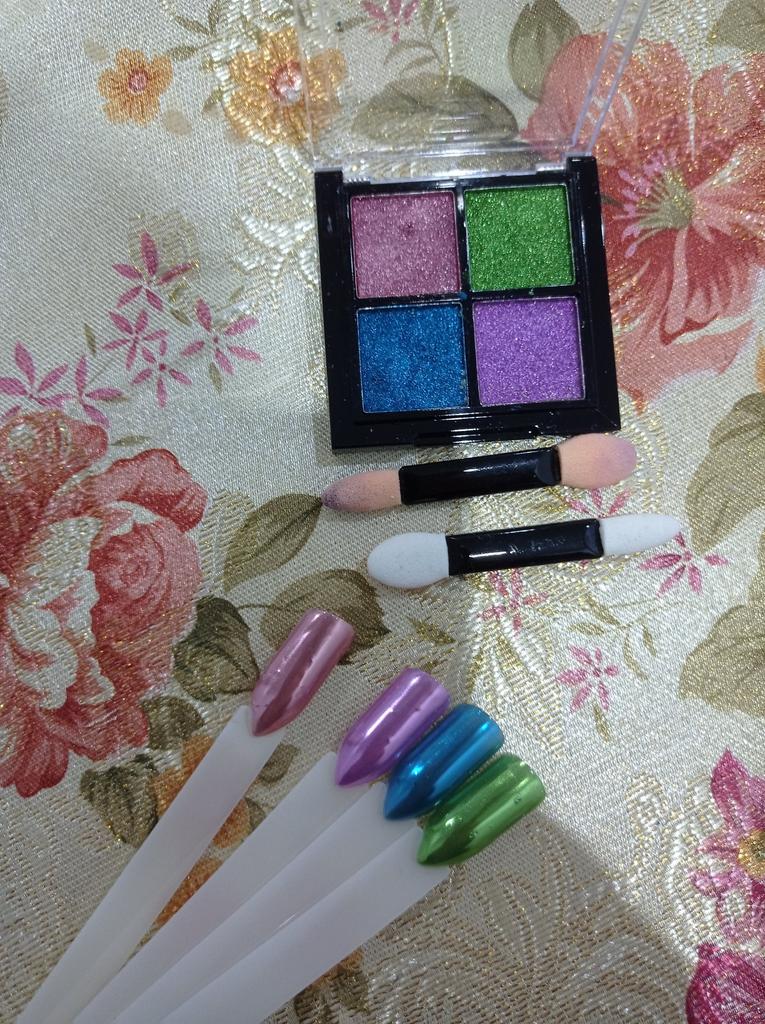 Отличная втирка для ногтей. Очень понравился прессованный формат- так работать гораздо удобнее и мелкие частички не летят по сторонам. Попробовала цвета на типсах с белой подложкой - результат на фото и видео. С темной подложкой будет ещё ярче. Надеюсь будет хорошо носиться) Продавца и товар- рекомендую.