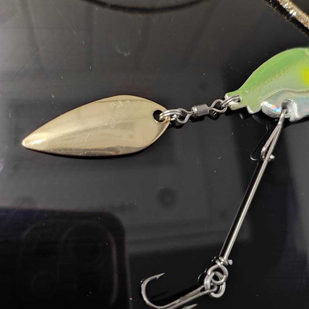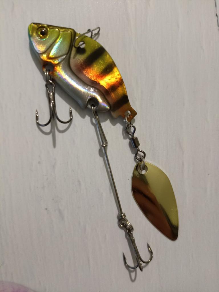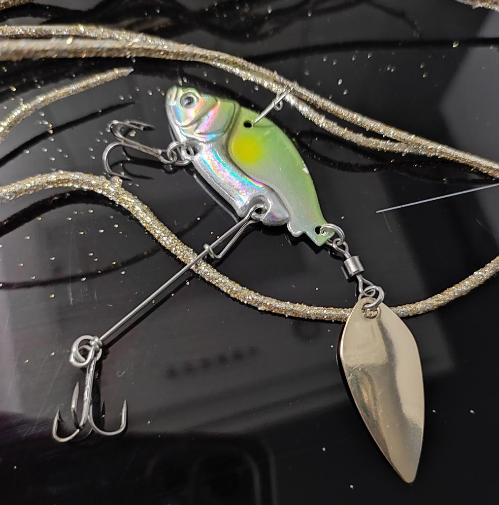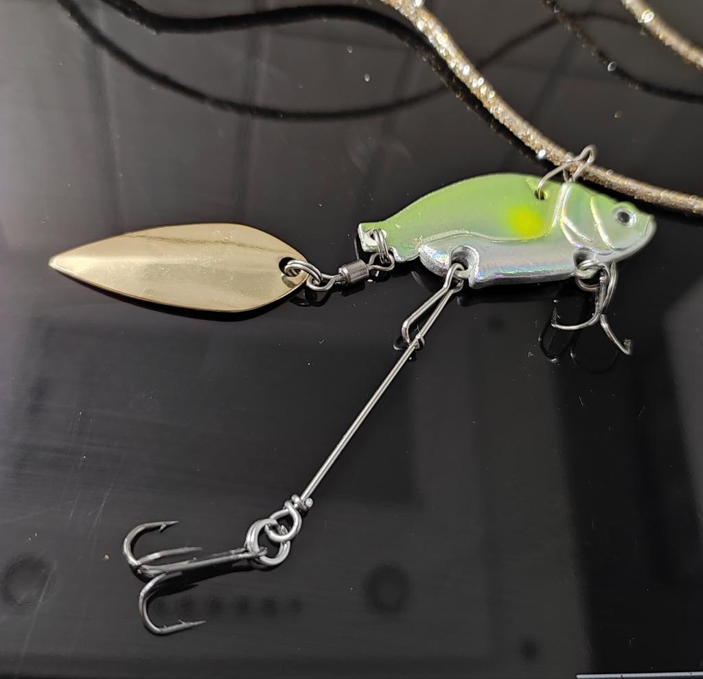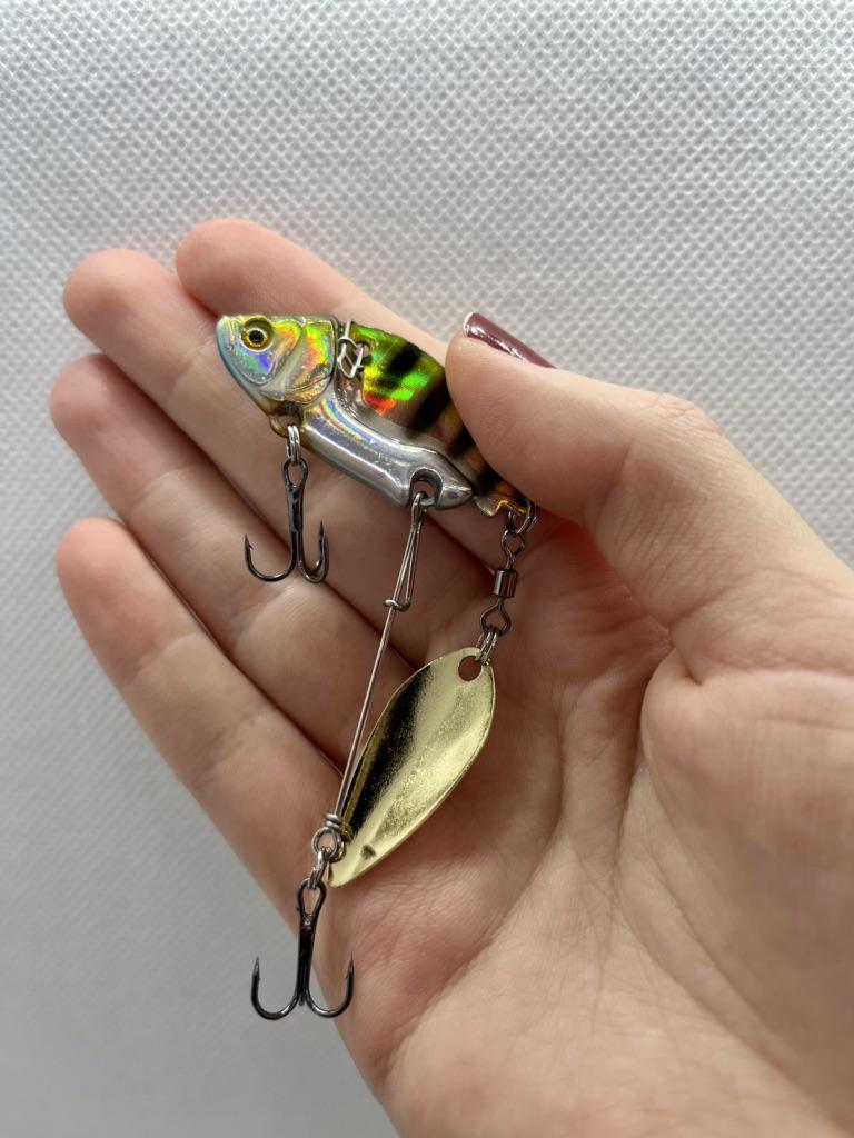 Тейл-спинер для рыбалки Выполнен в виде красивой рыбки с очень реалистичными глазками🐟 🪝2 тройника достаточно острые, что максимально увеличит шансы на хороший зацеп, один из которых на поводке 🤩Во время проводки играет лепесток и привлекает своим блеском рыбу✨ ⚖️Приманка весом в 13,6гр. 🐟Буду применять для ловли щуки, потому поводок будет из флюрокарбона, для меньшей заметности🎣 Мне очень понравилась оснастка, рекомендую. 😉НХ НЧ🎣