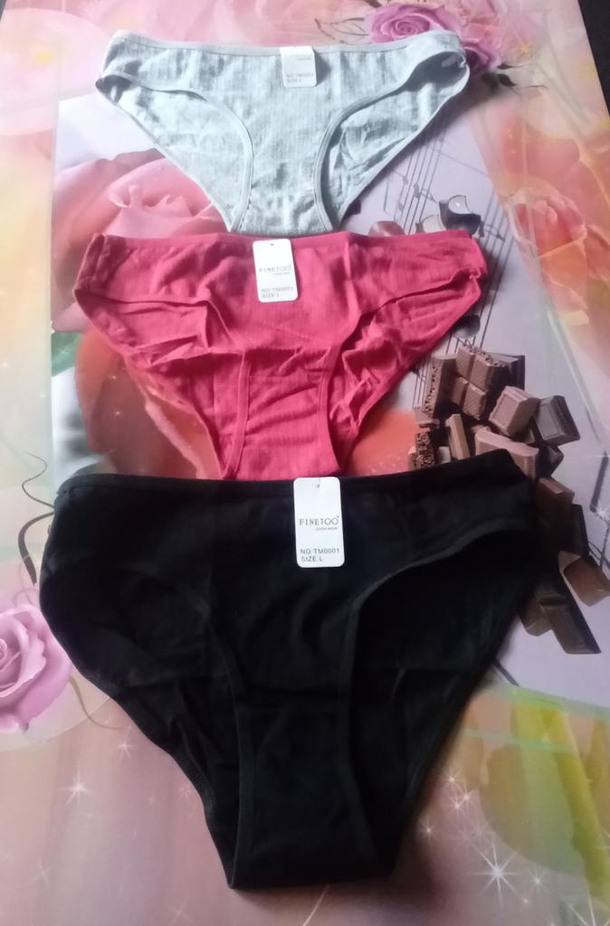Отличные трусики-брифы 💯👍от проверенного магазина FINETOO. Комплект трусиков из трех штук (цвета на выбор). Материал хлопок, спандекс 💯 Трусики со средней посадкой, мягкие,лёгкие, приятные к телу. 🤗👌 На параметры ОТ 75,ОБ 98 я взяла размер L ☝️ Подошли,сидят хорошо. Качество хорошее:швы ровные, аккуратные, нитки не торчат, дефектов не имеют. 💯👍 Рекомендую к покупке 🛒