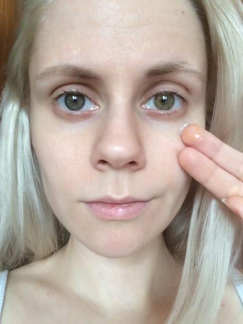 На моих глазах не видно, чуть темнее оттенок и все. Сами приятные при надевании и не чувствуются на глазах