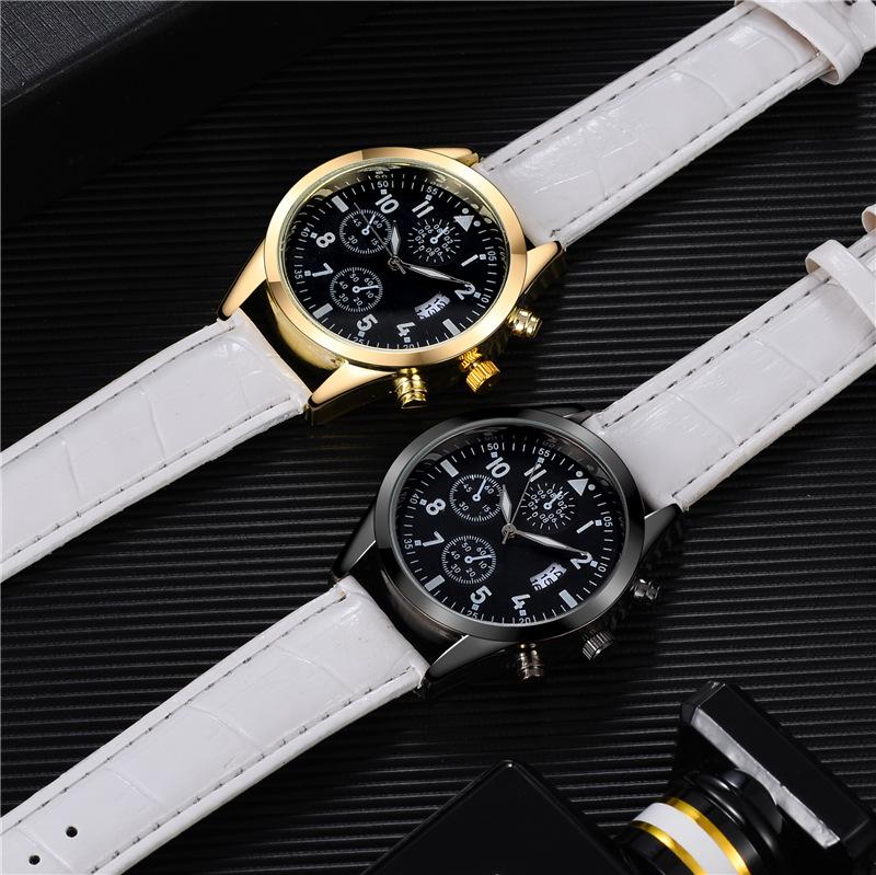Модные мужские черные часы, кварцевые аналоговые часы с календарем, кожаный ремешок, повседневные деловые наручные часы