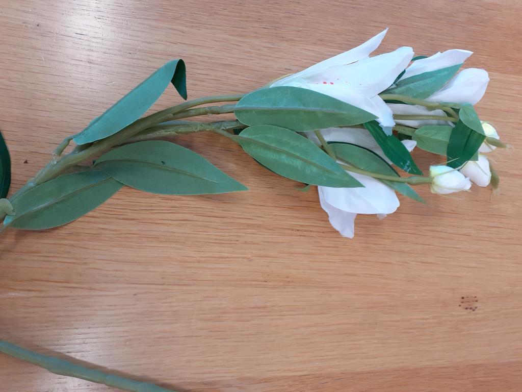 Заказ отправила 29.04.23 Получила в почтовом терминале 19.05.23 До Эстонии посылка гоа всего 20 дней, супер быстро!!! Это цветок - лилия, белого цвета. Соответствует заказанному. Ветка из пластика, цветы шелк. Длина -80 см ,высокий цветок. На ветке - цветов. 3 распустившиеся, а 3 в бутонах. Нужно обработать паром, чтобы расправились помятые цветы и листья. 67 см общая длина ветки . Мне понравилась ветка лилии Очень похожа на настоящуую. Продавцу и службе доставки 5+
