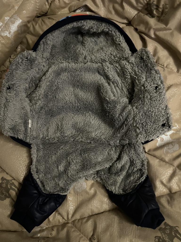 Получили долгожданный зимний комбезик. Рукава и штанишки не синие, а чёрные, но в принципе это не критично. Думала, что расцветка поярче, но и в реальности не плохо. Может это камера так передаёт. Кнопочки плотные, внутри подкладка серая, очень приятная на ощупь. Взяла размер L, думала будет большеват, но комбезик моему малышу в самый раз, он весит 3500. Покупкой довольна, теперь можно и на мороз 😀 идти гулять. Товар и продавца рекомендую