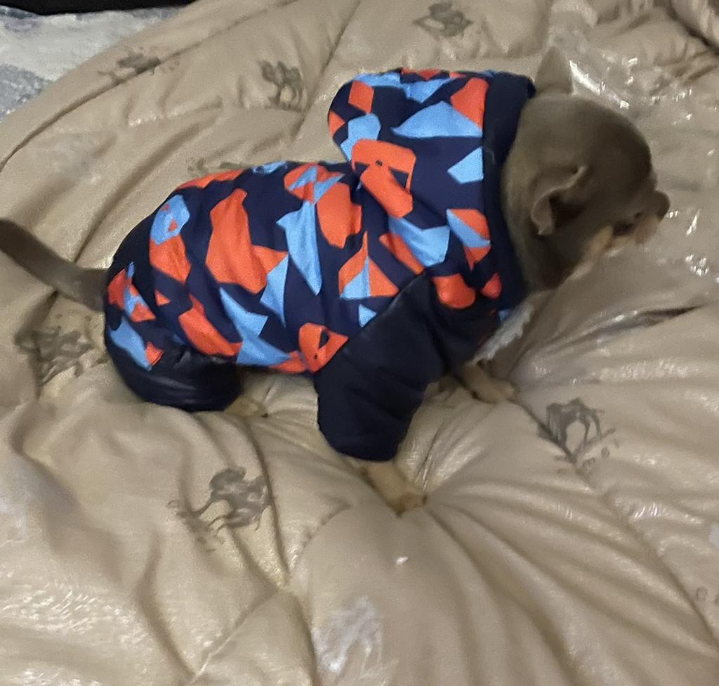 Комбез красивый, пошив качественный, никаких ниток и посторонних запахов.Размерной сетке вроди и соответствует, но на собаке впритык, нужно было заказывать на размер больше..( но это мой промах). Ну ничего страшного, немного погуляем и кому то подарим, а себе закажем размер ХХL. У нас сейчас вес 7 кг, а когда заказывала было 6,5. Пока посылка шла, собачка немного подрос и сейчас комбез тесноват.🙂 А так в принципе покупкой довольна.Продавцу и Джуму отдельное спасибо !))🤗💋 Рекомендую !!!👍