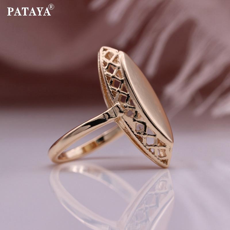 PATAYA Глянцевые кольца женские цвета розового золота простое плетение полые кольца с ромбами Этническое свадебное кольцо в подарок — купить товар онлайн с бесплатной доставкой до всему миру!