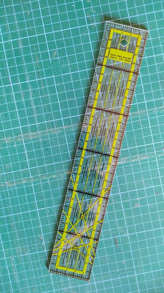 Линейка из довольно плотного пластика с прямым срезом края. Нет этого скоса, как на канцелярских линейках, на который я постоянно наезжаю ножом. С лицевой стороны разметка довольно яркая. С обратной стороны цифры не видны, но линии и штрихи разметки читаются хорошо. Длина 30 см, ширина 5 см.