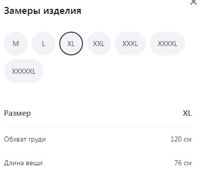Большой размерный ряд: XXXXXL, M, L, XL, XXL, XXXL, XXXXL