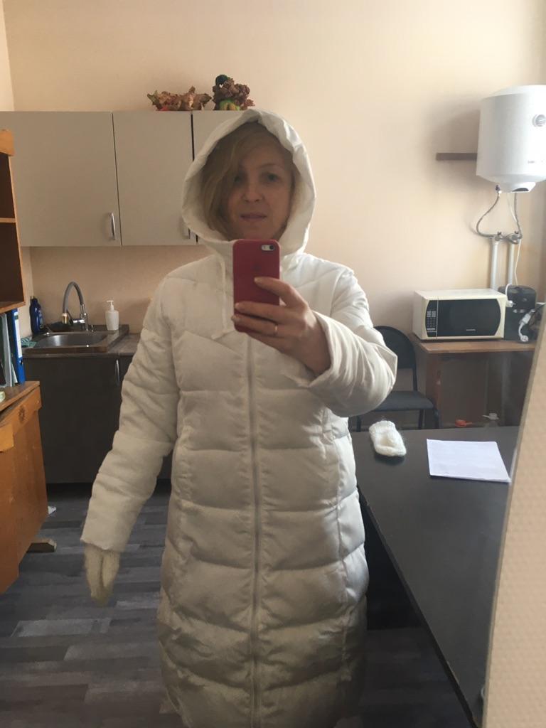 🎄 Получила свою курточку) 👍🏻 На мой полноценный российский 48 размер продавца 4XL отлично подошёл. Рукав в размер и плечи сидят как надо! Смотрите фото! 😉 Мой рост 160см. Курточка ниже колена и смотрится как оверсайз. Вполне можно надеть толстый свитер и при этом я не буду обтянута. ☝️ Вопреки моим ожиданиям, цвет действительно белый! Можете увидеть на одном из фото цвет куртки в сравнении с двумя другими «белыми» цветами))😜 ❄️ Конечно, курточка не на мороз! Сейчас на улице -15. Я надела ее на блузку и мне довольно прохладно! Продувается и не очень греет) и это я просто прошла от машины до работы) Из дома выходила в другой куртке, мне было в ней тепло в эту же погоду и в этой же одежде) ☃️ В целом я довольна! Товар отслеживался хорошо! До Московской области дошёл за полтора месяца, учитывая новогодние праздники) 👌 Продавца рекомендую!