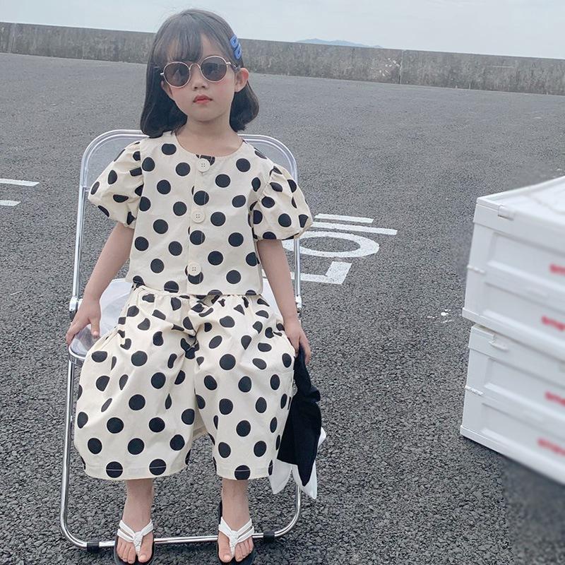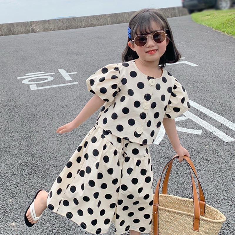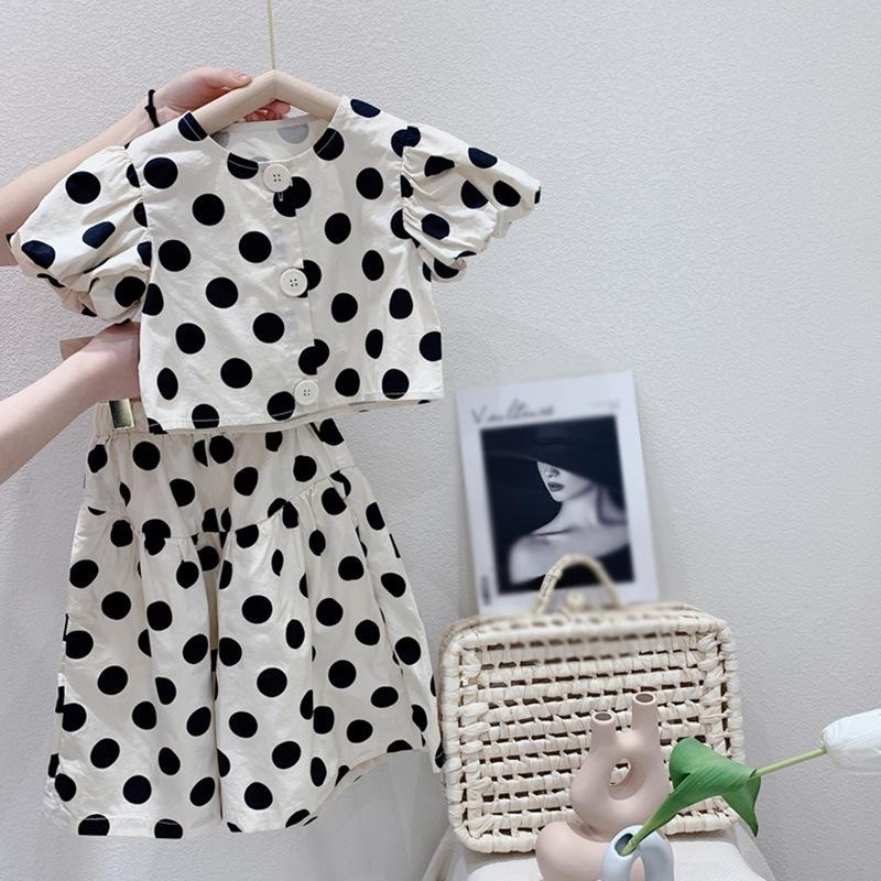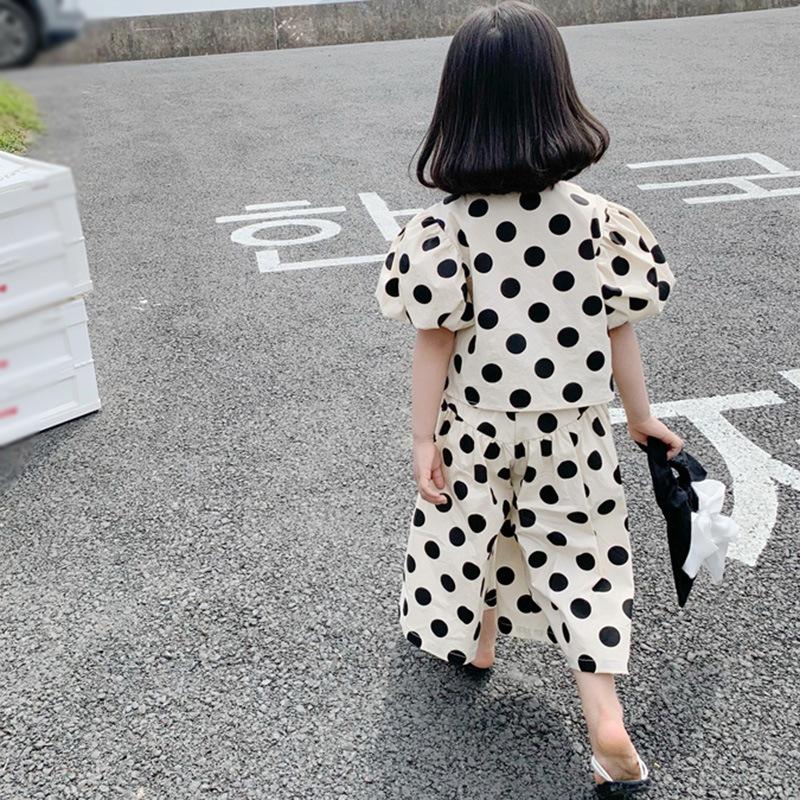 Детский костюм в горошек, рубашка для девочек, топ-кюлоты, костюм-двойка