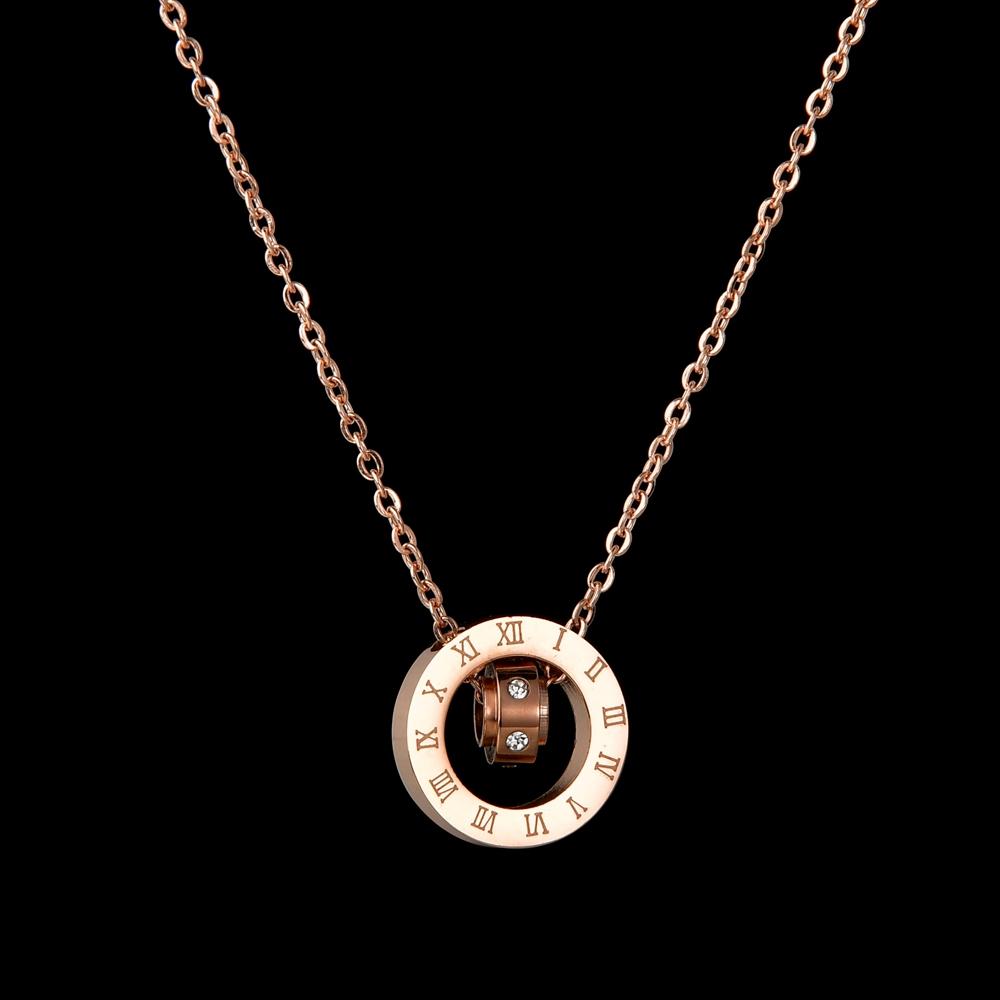 Модное новое ожерелье из титановой стали розового золота с римскими цифрами и круглым кулоном