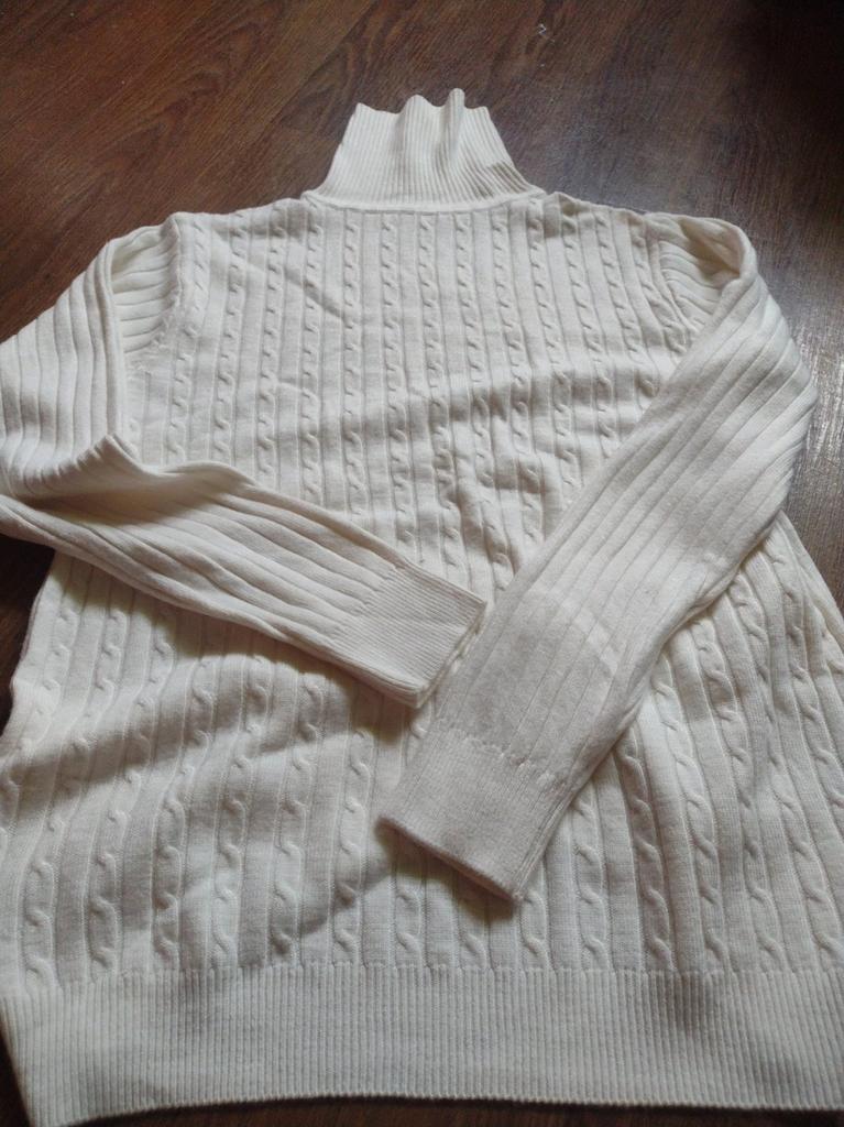 Не проходите мимо! ИЗУМИТЕЛЬНАЯ водолазка! Да-да, вот так с ходу и категорично. Это уже третья водолазка (по мне это явно не свитер). Первые две заказывались супругу, сначала чёрного цвета и она так ему понравилась, что тут же был приказ заказать такую белую. Супруг пока сфотографироваться не в желании, потому демонстрирую фото третьей водолазки для сына. И он тоже в восторге! Итак! Водолазка наимягчайшая, наинежнейшая, очень ласковая к телу. И, к тому же, очень тёплая (может это всё таки свитер?) Прекрасно тянется, спокойно можно одевать на голый торс, так как не колется. Мягко обволакивает и комфортно ощущается. Горло не давит, можно подвернуть. На параметры 91-82-93, рост 171см, ширина плеч 43см взяла размер М. Фото предоставила, прошу посмотреть. Замеры водолазки в не растянутом виде таковы: Длина без горла 62 см. ОГ 86см. Рукав 55см. Ширина плеч 38см. Высота горла 15см. Фактура водолазки достаточно плотная, при растяжении не просвечивает, легко принимает назад свою изначальную форму. Стилизована под вязку. На передней части узор в виде простейших кос с чередованием ровных полосок. Цвет глубокий чёрный. Смотрится стильно и строго. На мужчинах атлетического телосложения будет смотреться бомбически. Одна из удачнейших покупок и вам от всей души рекомендую. И, кстати, сейчас приятная скидка на эту водолазку.
