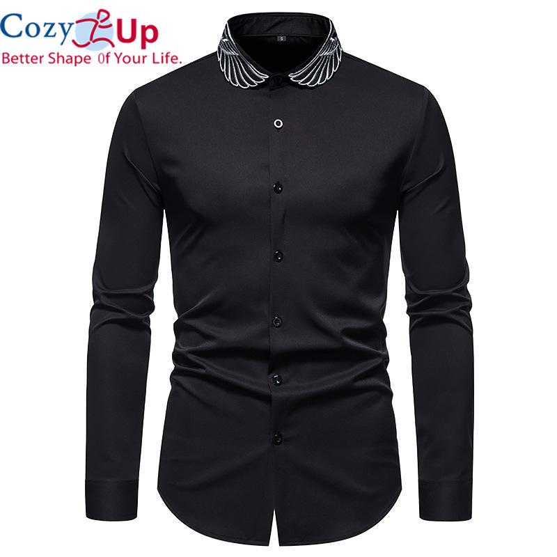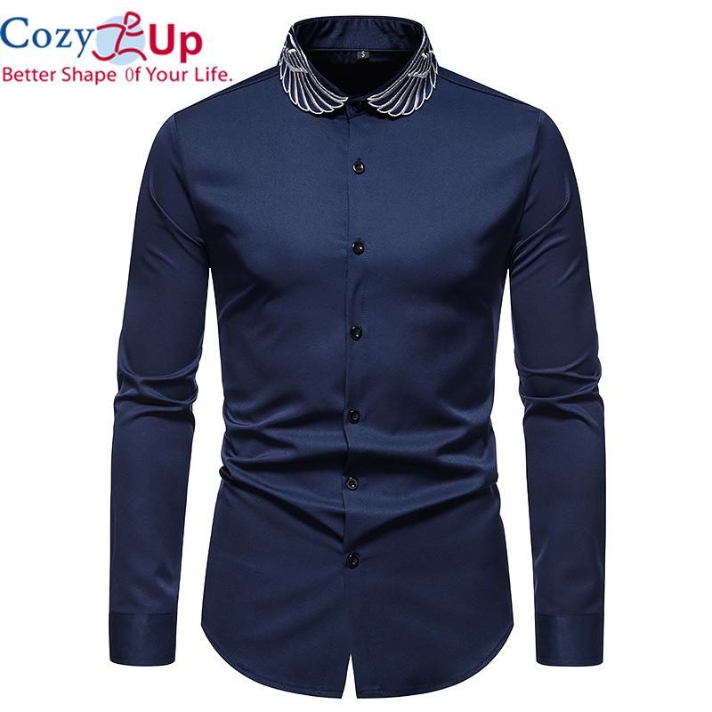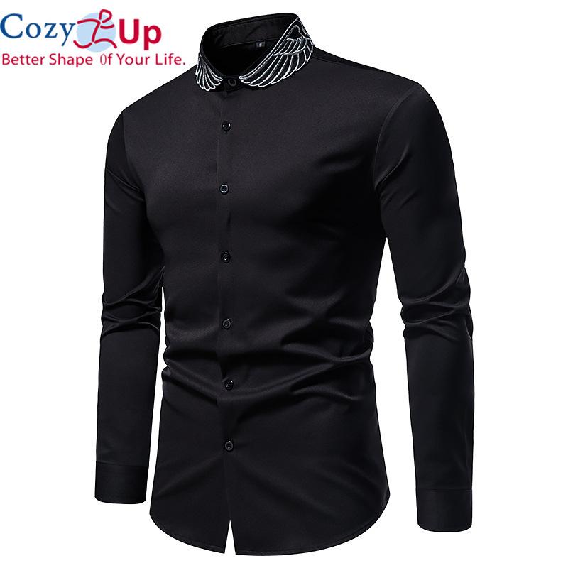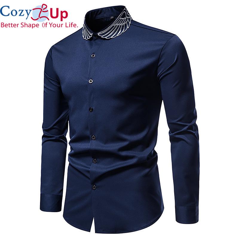 Cozy Up Золотая вышивка, белая рубашка, мужские рубашки с воротником-стойкой, повседневные тонкие рубашки с длинным рукавом