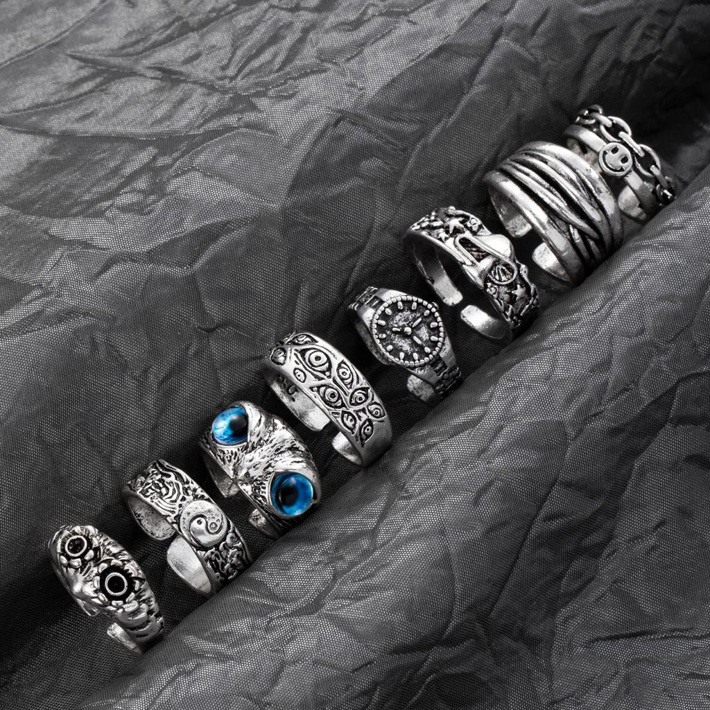 Кольцо в стиле ретро с синей совой, кольцо в форме сердца с бабочкой, со смайликом, модное трендовое кольцо, кольцо в стиле панк, стиль хип-хоп
