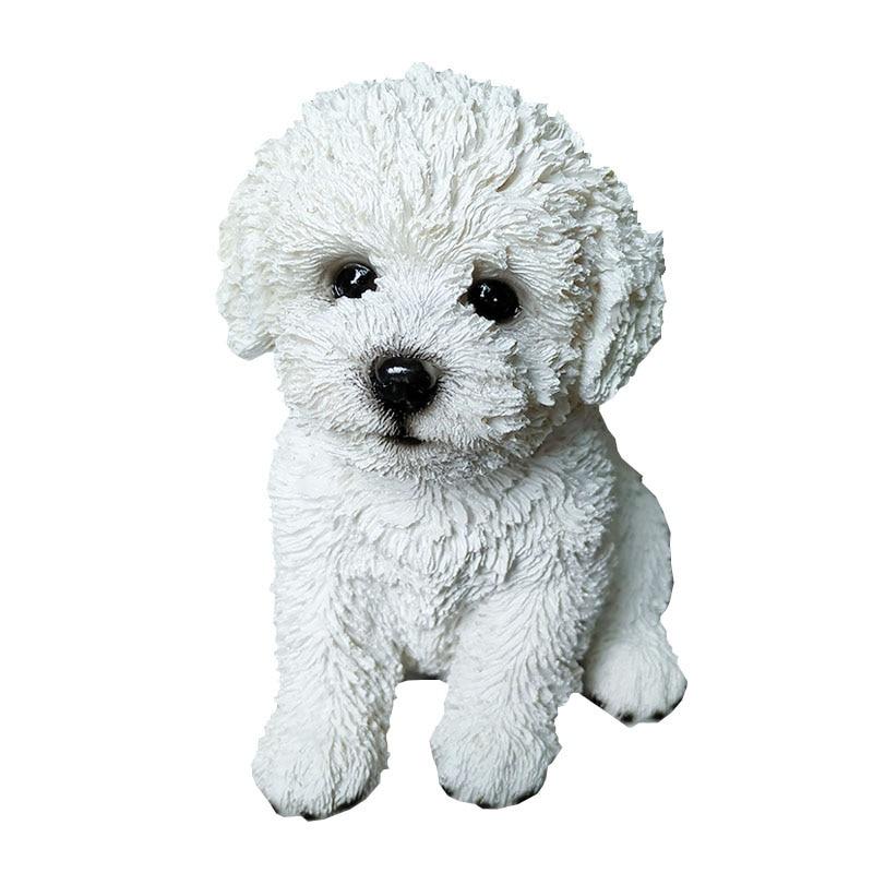 Прекрасный белый бишон-фризе, имитационные украшения, маленькая белая модель собаки, украшение для дома, комнаты, изделия из смолы, мини-садовые аксессуары