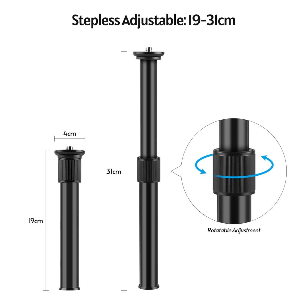 Выдвижной удлинительный стержень из алюминиевого сплава, 19-31 см, универсальный интерфейс 1/4 дюйма, 3/8 дюйма с