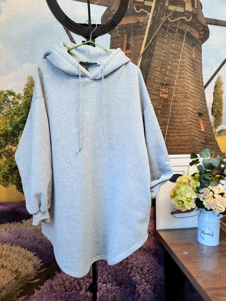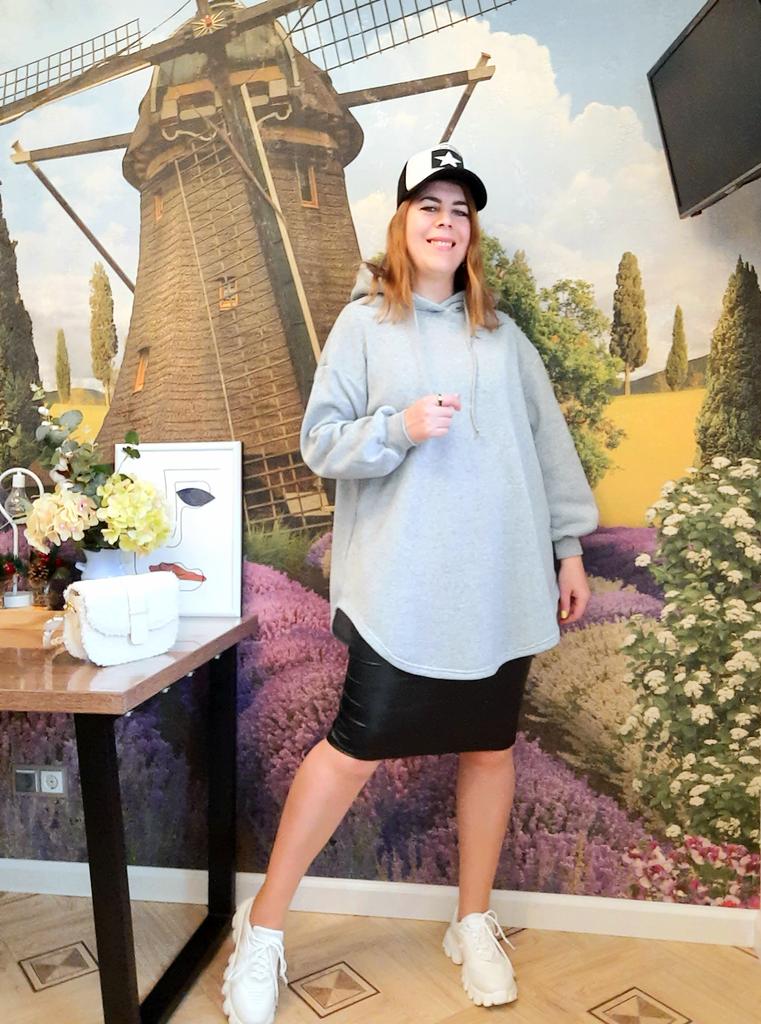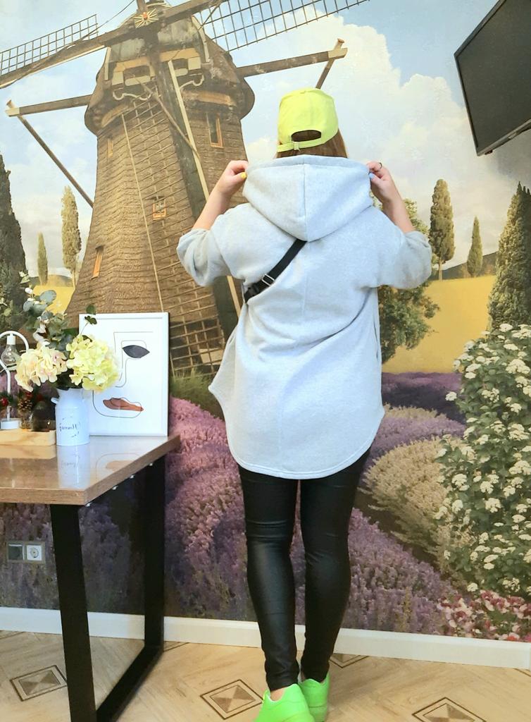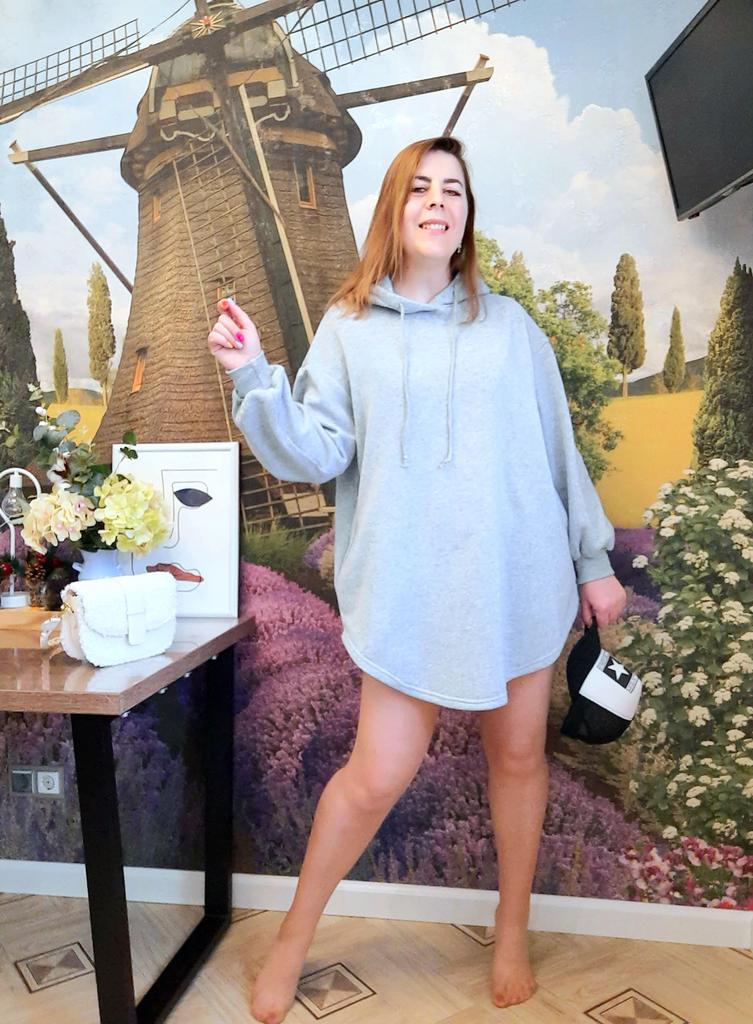 Толстовка понравилась. Пошив качественный. Села очень оверсайз, как я и хотела. Думала, что ткань будет плотнее. Но нет, достаточно тонкая с легким начесом. На мой рост 150 см. по длине изделия и рукава все, как надо. Можно для утепления надеть свитер или джемпер. Ширина позволяет. Рекомендую к приобретению. Фото выставлю позже. Дополняю. Замеры изделия, ог-65, низ-75. На мой вкус низ рукава слишком широкий, можно заузить. В остальном претензий нет, несколько раз выгуливала. На тонкий свитерок не холодно. Очень довольна покупкой. Рекомендую.