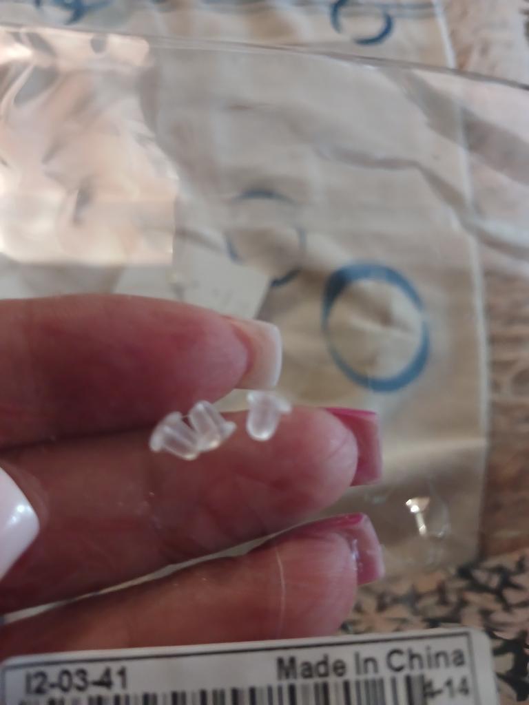 Серьги милые и нежные! Были погнуты, но я выровняла. Продавец положил 3 заглушки силиконовые. Спасибо!