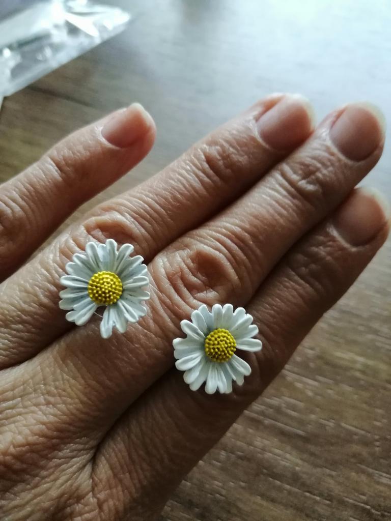 Милые , заказала под костюм летний, там тоже ромашка нарисована 😍😍🤗😁.Жду лета чтоб быстрее надеть костюм и эти серёжки, будет супер 👍 смотреться
