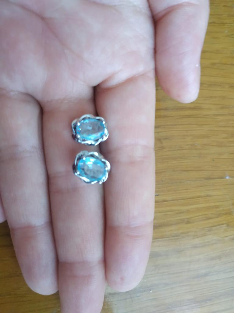 Очень милые серёжки, выполнены аккуратно, цвет камня светло-голубой,оттенка бирюзы. Спасибо продавцу, товар рекомендую.